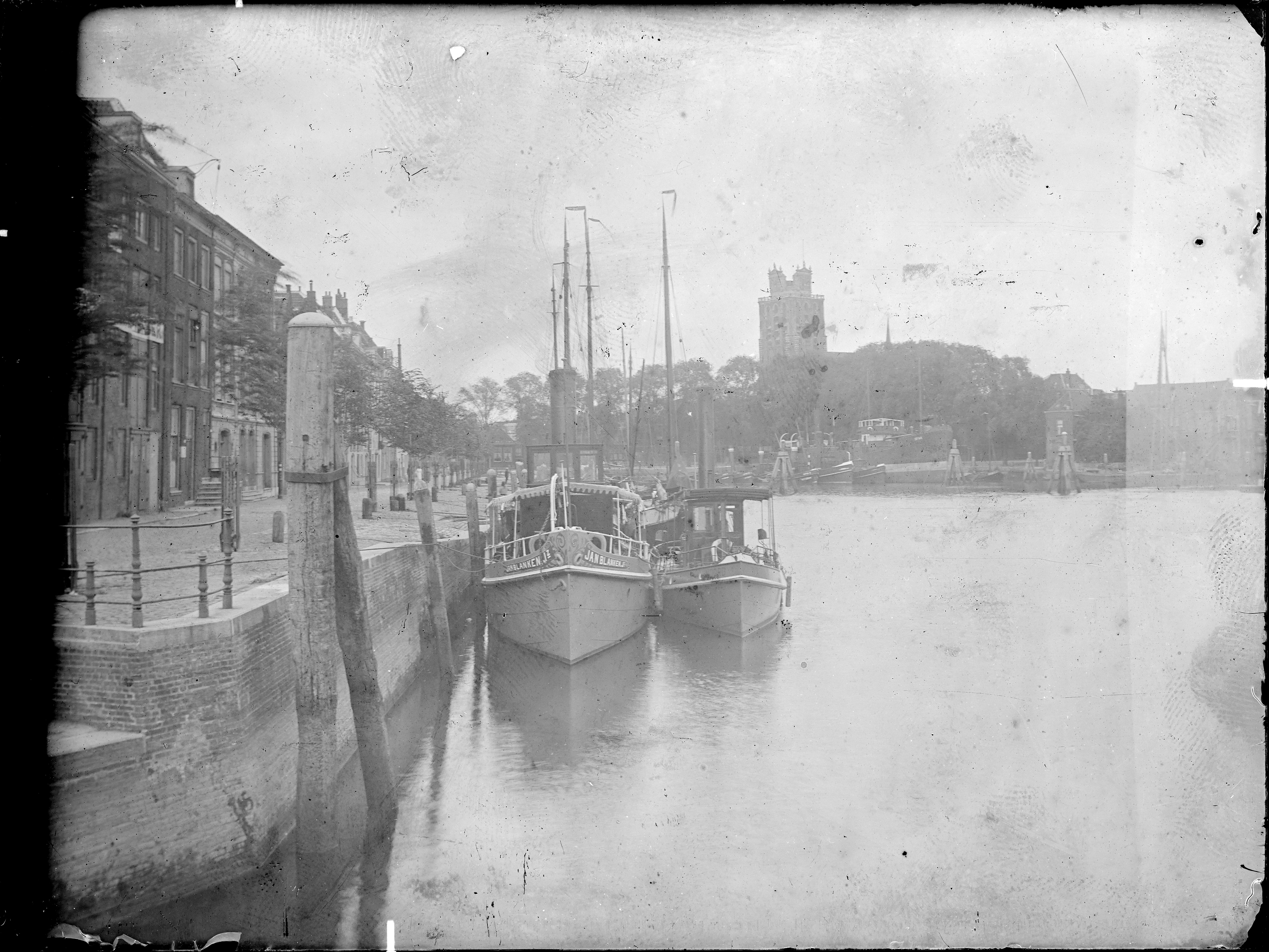 - Het directievaartuig van Rijkswaterstaat SS Jan Blanken Jz. in de Kalkhaven gezien vanaf de Draaibrug richting Grote Kerk.