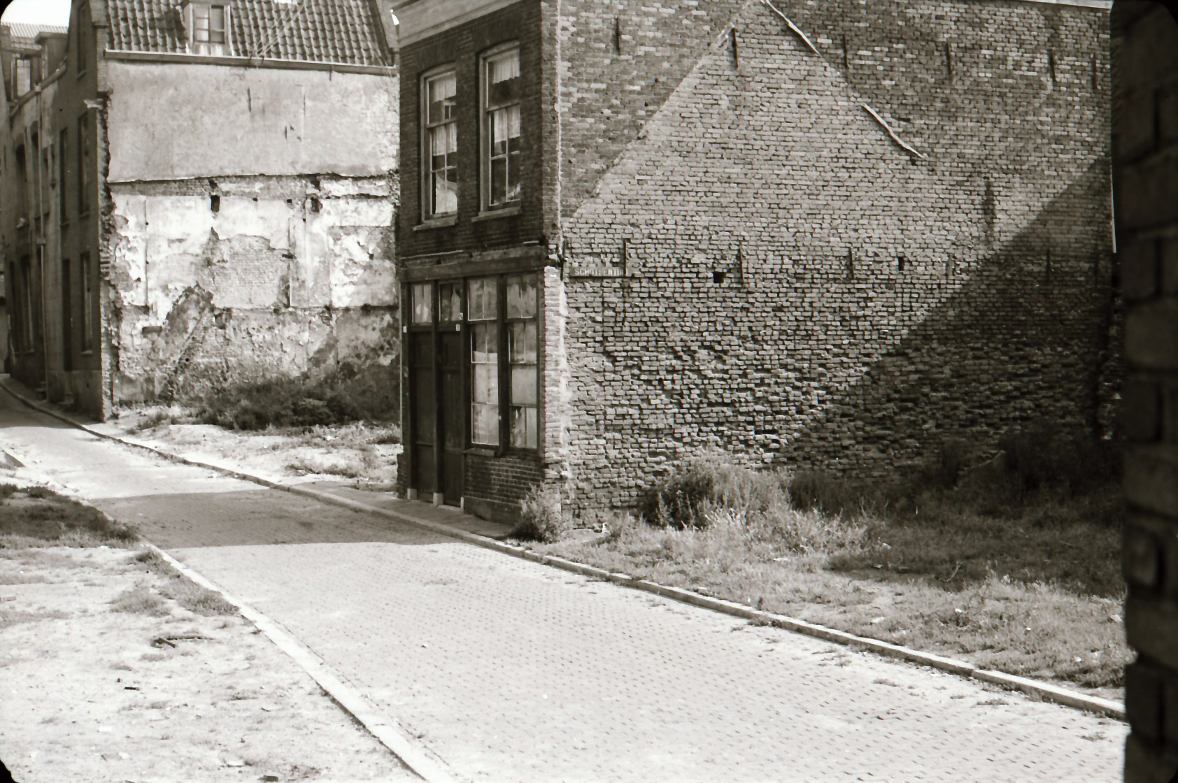 Desondanks is het hier [552_312074,552_800028] ook zichtbaar. Het bordje is denk ik voor de lol achter dat muuranker geklemd. Normaal gesproken kon je ook niet vanuit deze straat de Schotsentuin inkomen toch? Tijdens de sloopwerkzaamheden mogelijk wel. De straten liggen parallel aan elkaar. Dezelfde situatie in 'betere' tijden zie je terug op 552_406136 pal na die mooie lantaarn.