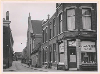 - De Lenghenstraat vanaf de Vriesestraat richting Johan de Wittstraat/Bagijnhof. Rechts kolenhandel Van Rhijn en de Doopsgezinde Kerk.