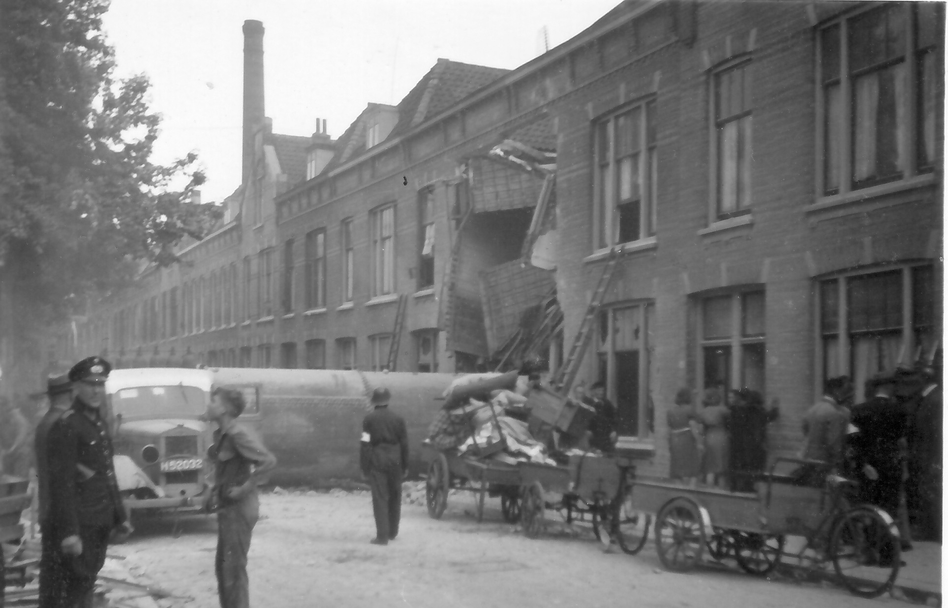 Ravage na een ontploffing bij kalkfabriek Van Dijk aan de Lijnbaan.