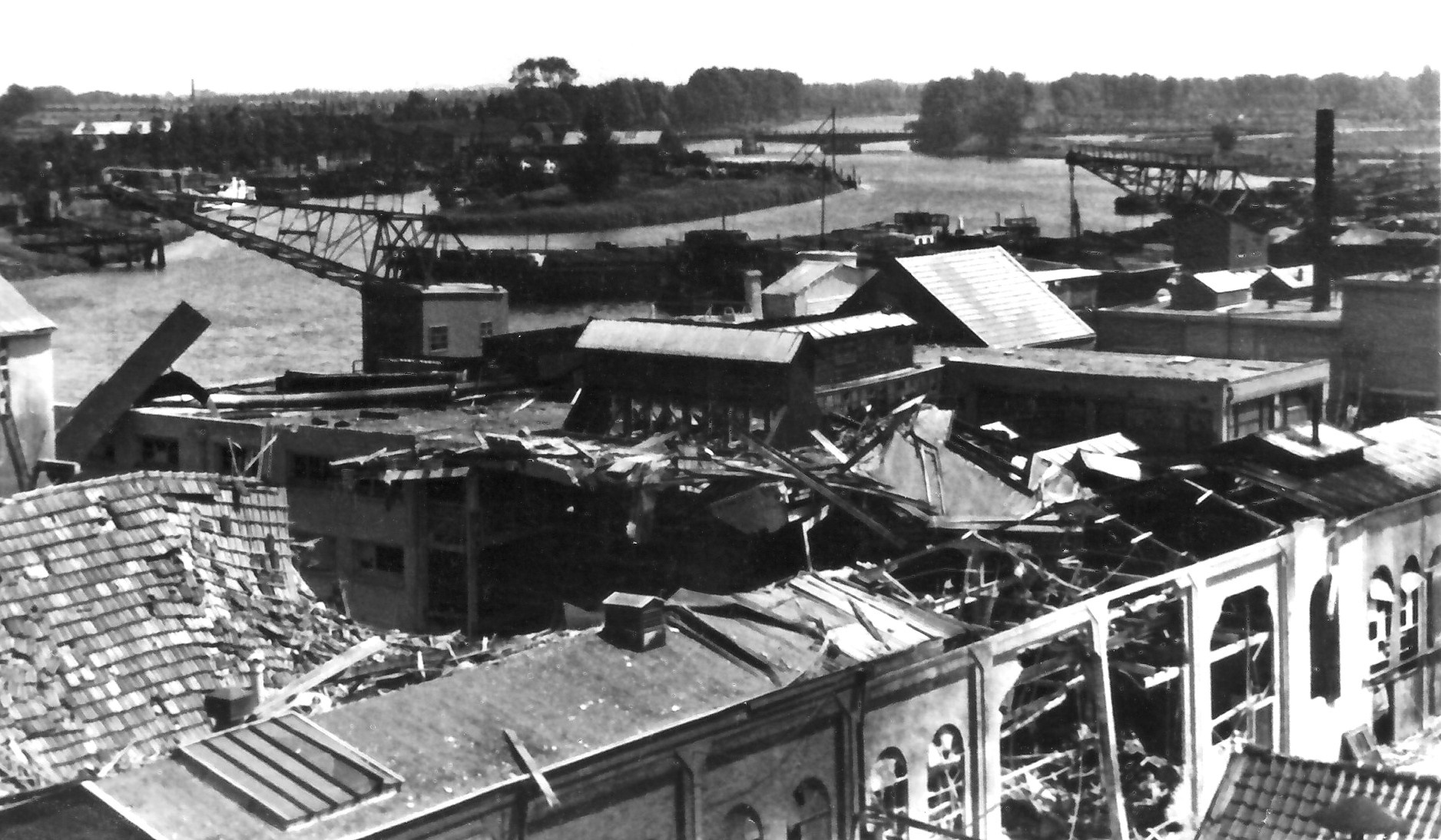 Ravage na een ontploffing bij kalkfabriek Van Dijk aan de Lijnbaan.