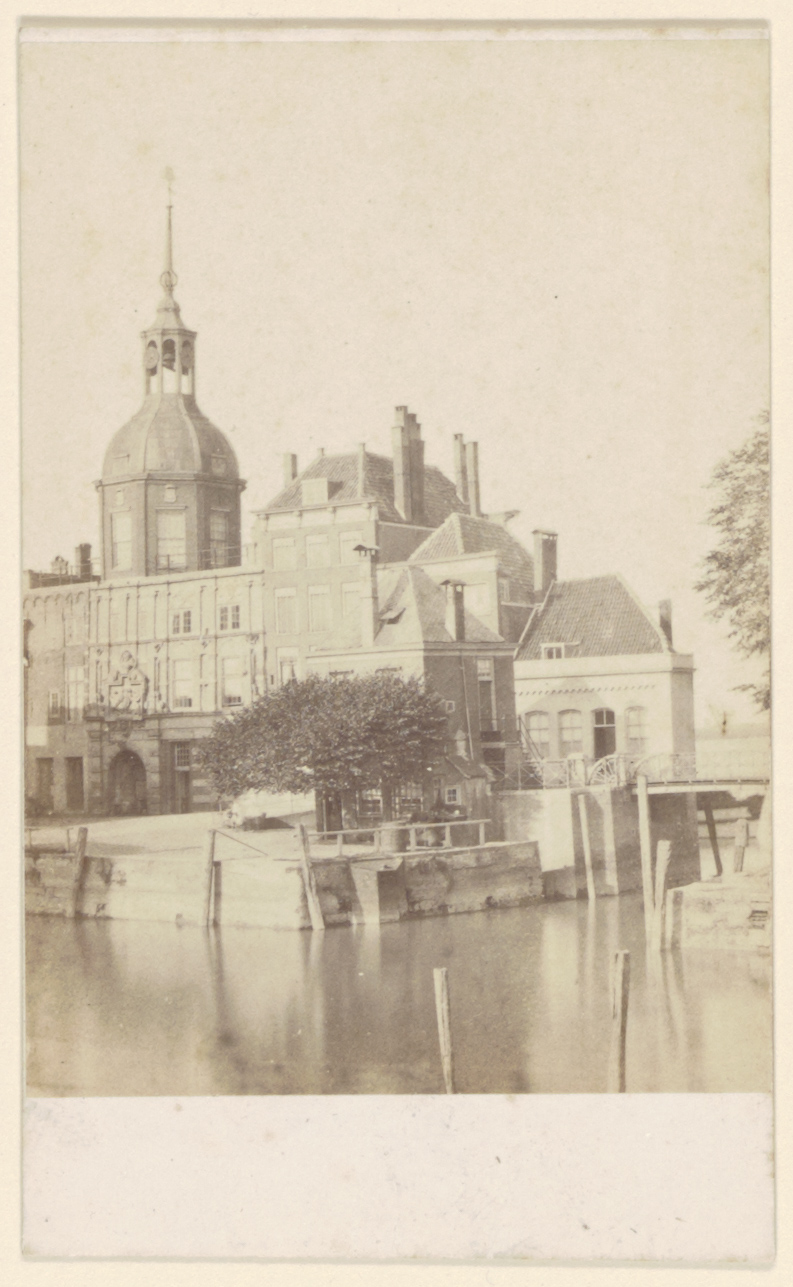 - De Groothoofdspoort vanaf de Taankade over de Wijnhaven gezien. Rechts de Boombrug.