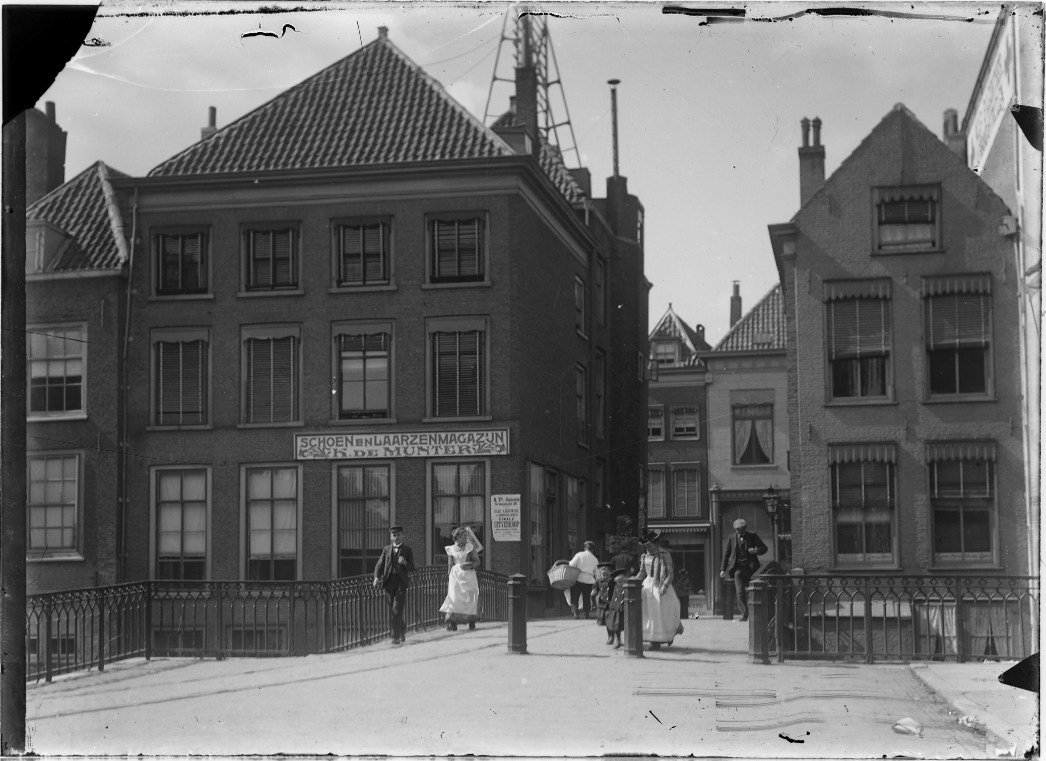 De Visbrug voor de verbreding richting de Groenmarkt met de rails van de paardentram