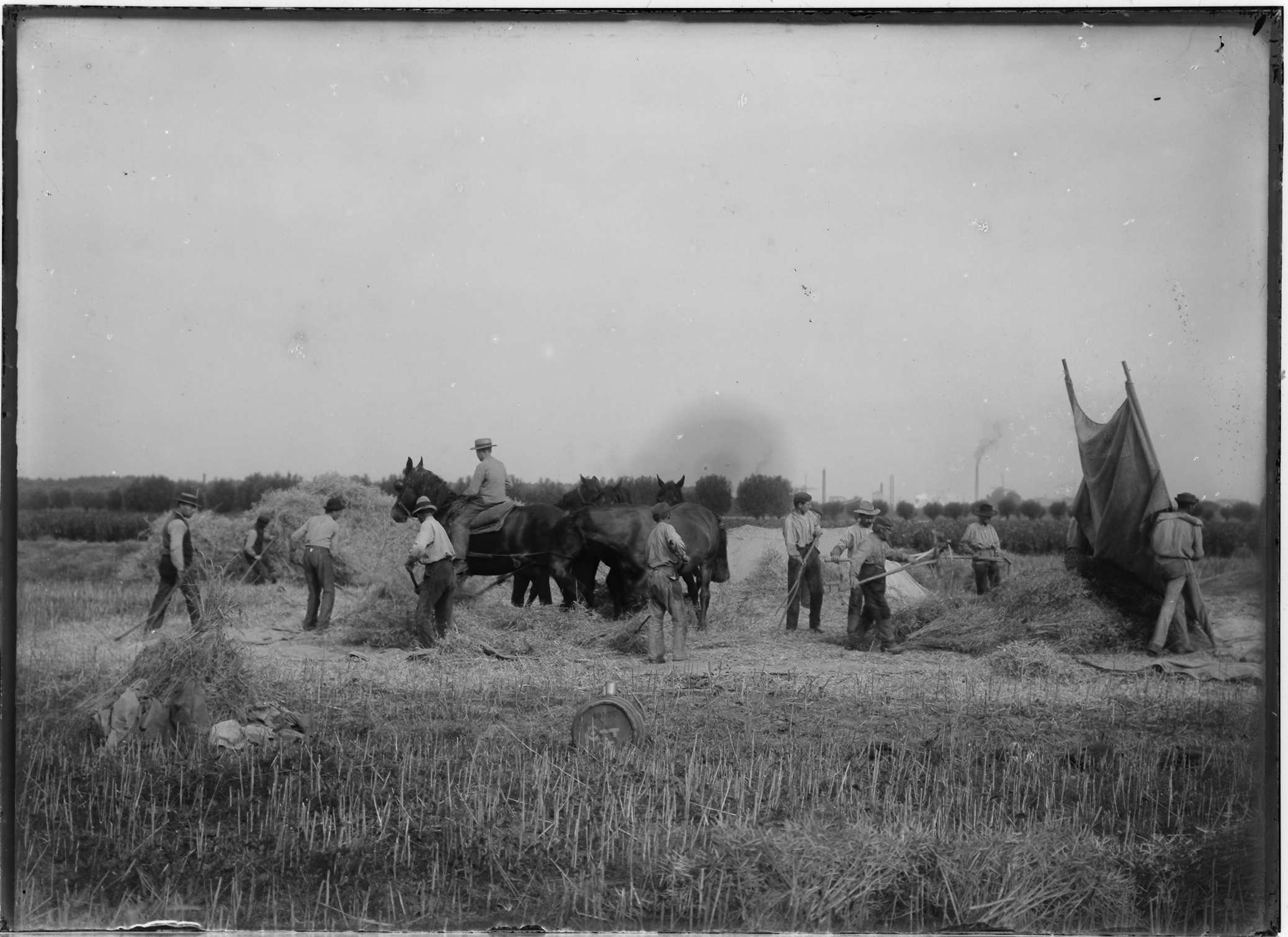 - akkerbouw / landbouw dorsen / dorsvlegels landarbeiders paarden