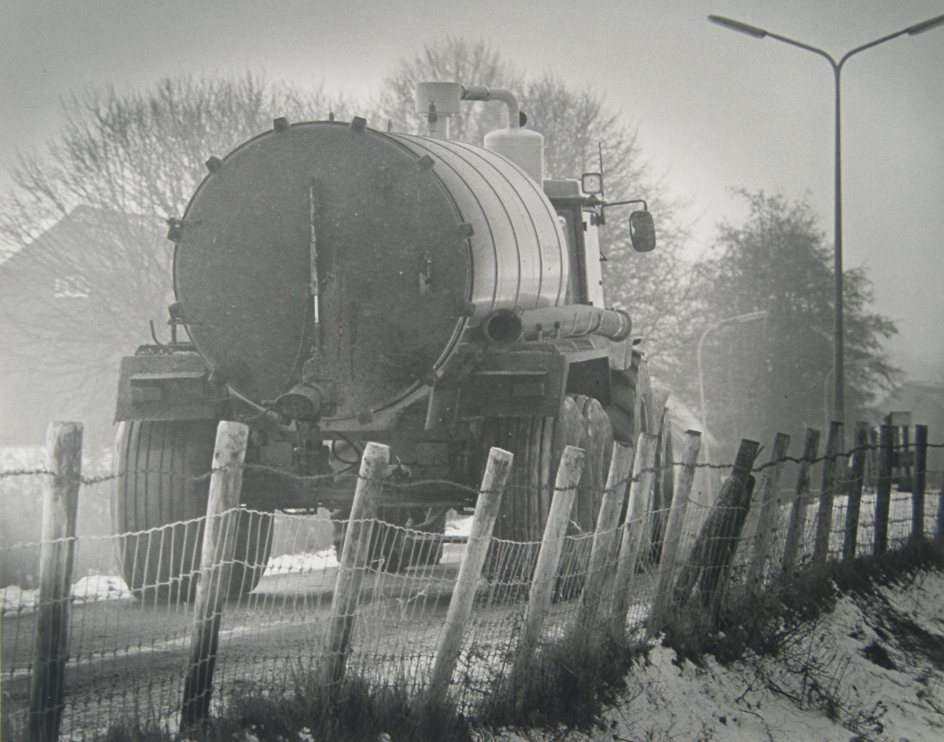 Gierkar (mesttank) op besneeuwde Noordendijk