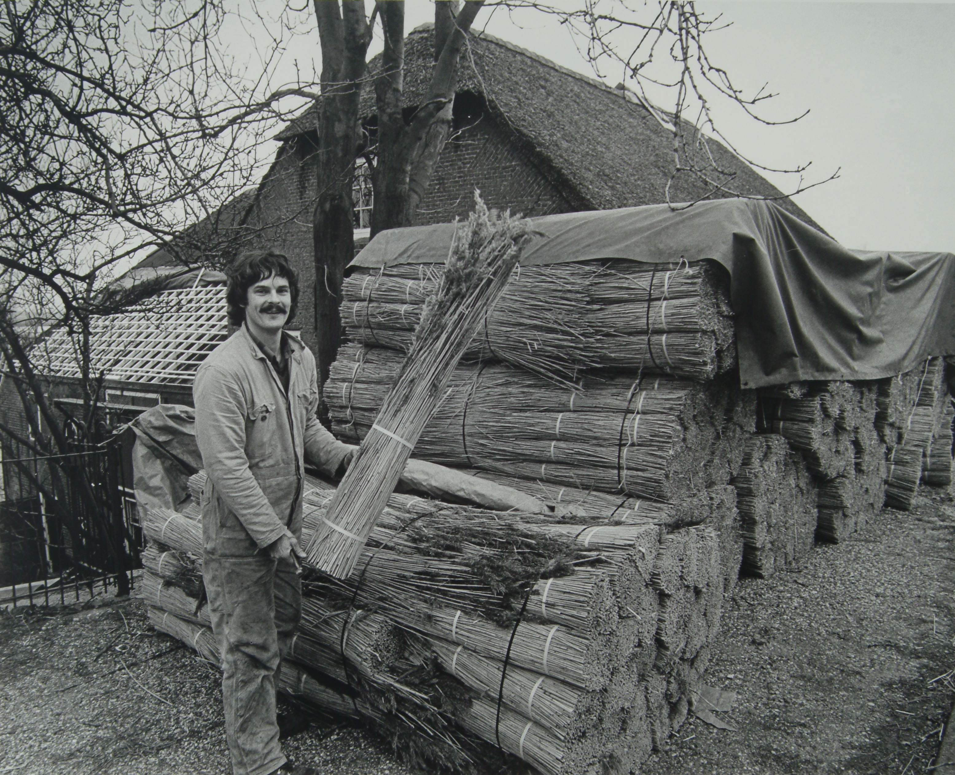 - Rietdekker toont het riet waarmee hij het dak van de oudste boerderij van Papendrecht aan de Oosteind 142 gaat dekken