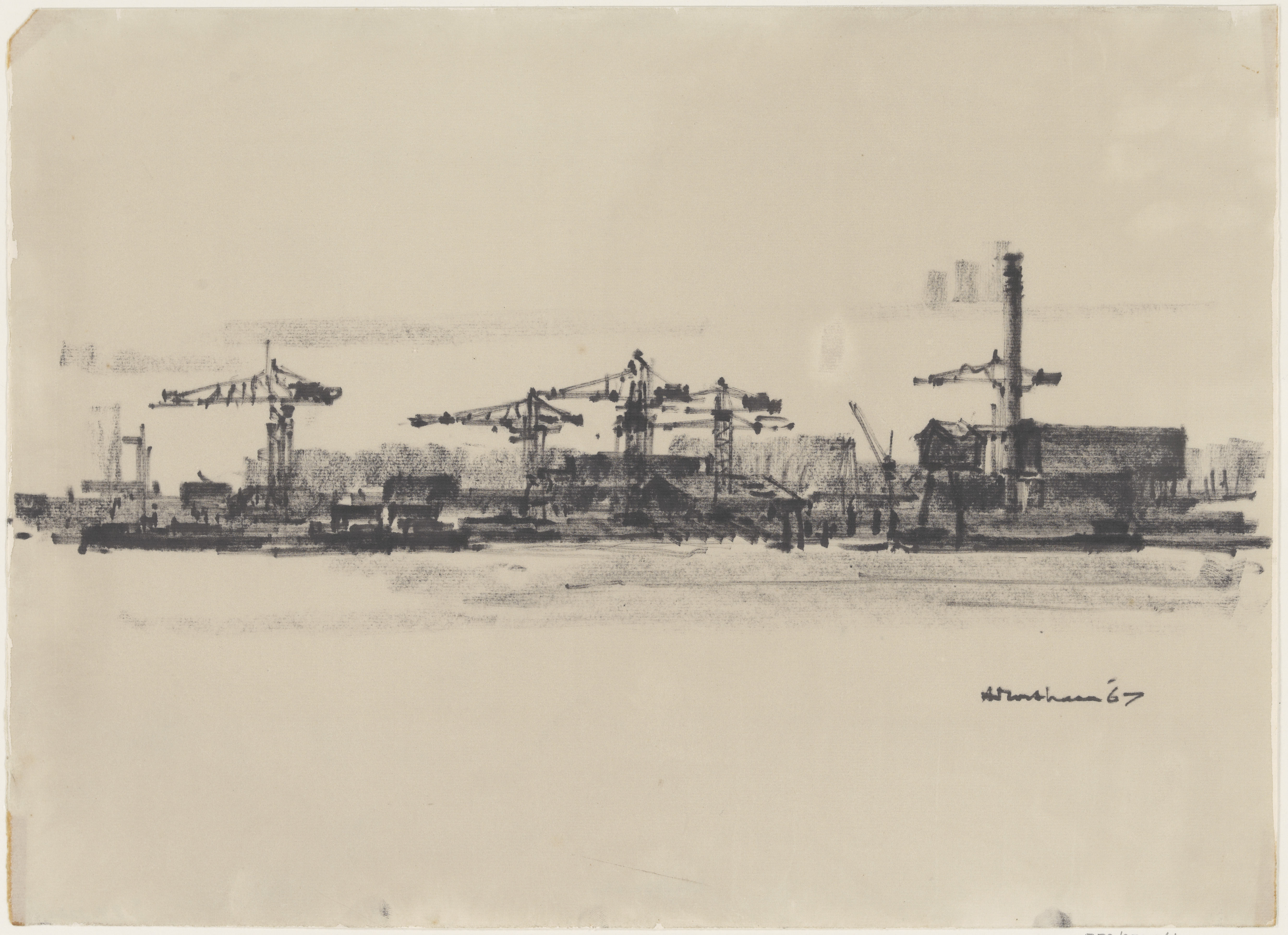- fabriekspijpen / schoorstenen hijskranen scheepswerven