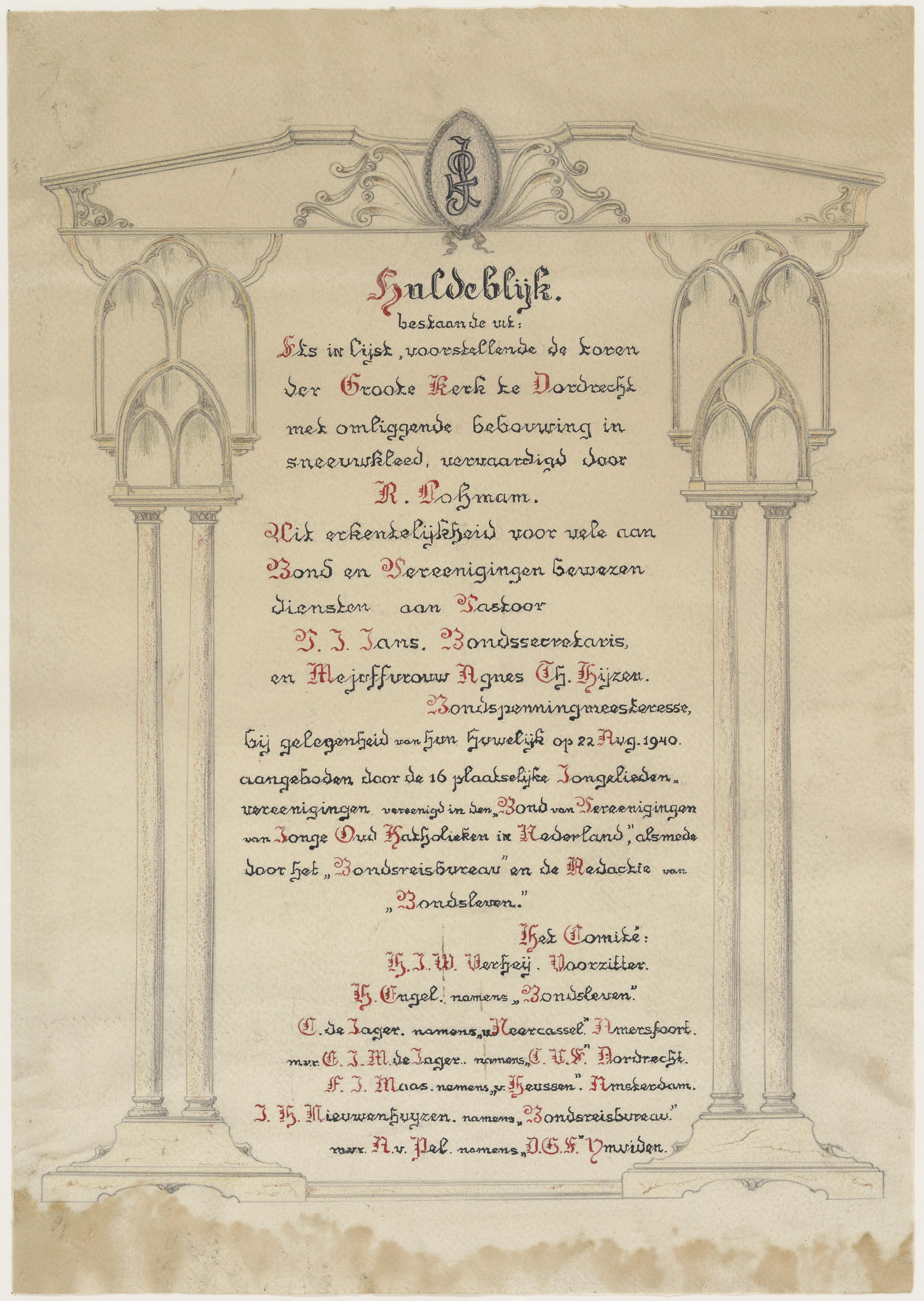 - De ets was huldeblijk voor het huwelijk van pastoor P.J. Jans en Agnes Th. Hijzen (geboren 03-12-1909) op 22 augustus 1940.