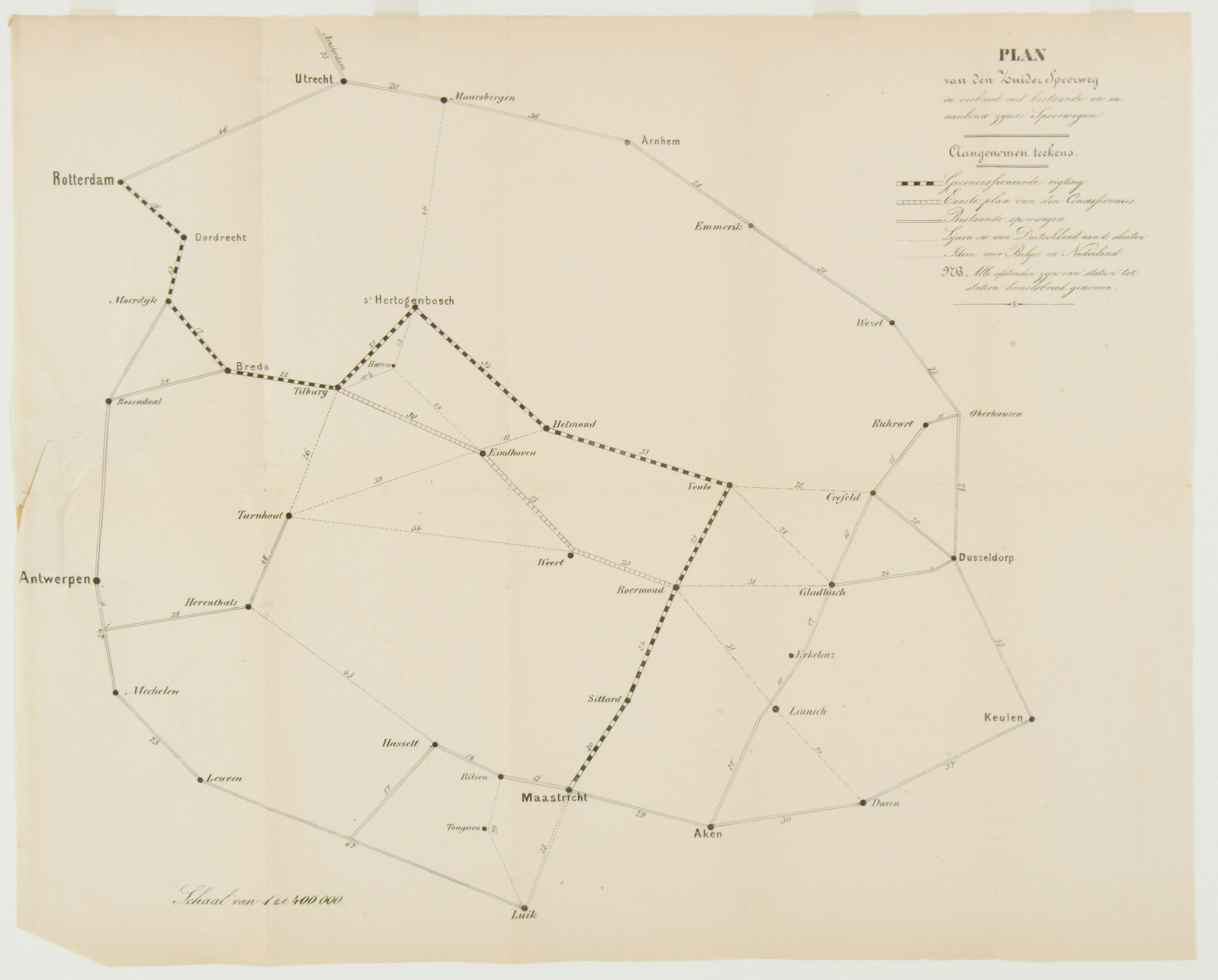- Plan van de spoorwegverbindingen tussen zuid Nederland, België en zuidwest Duitsland.