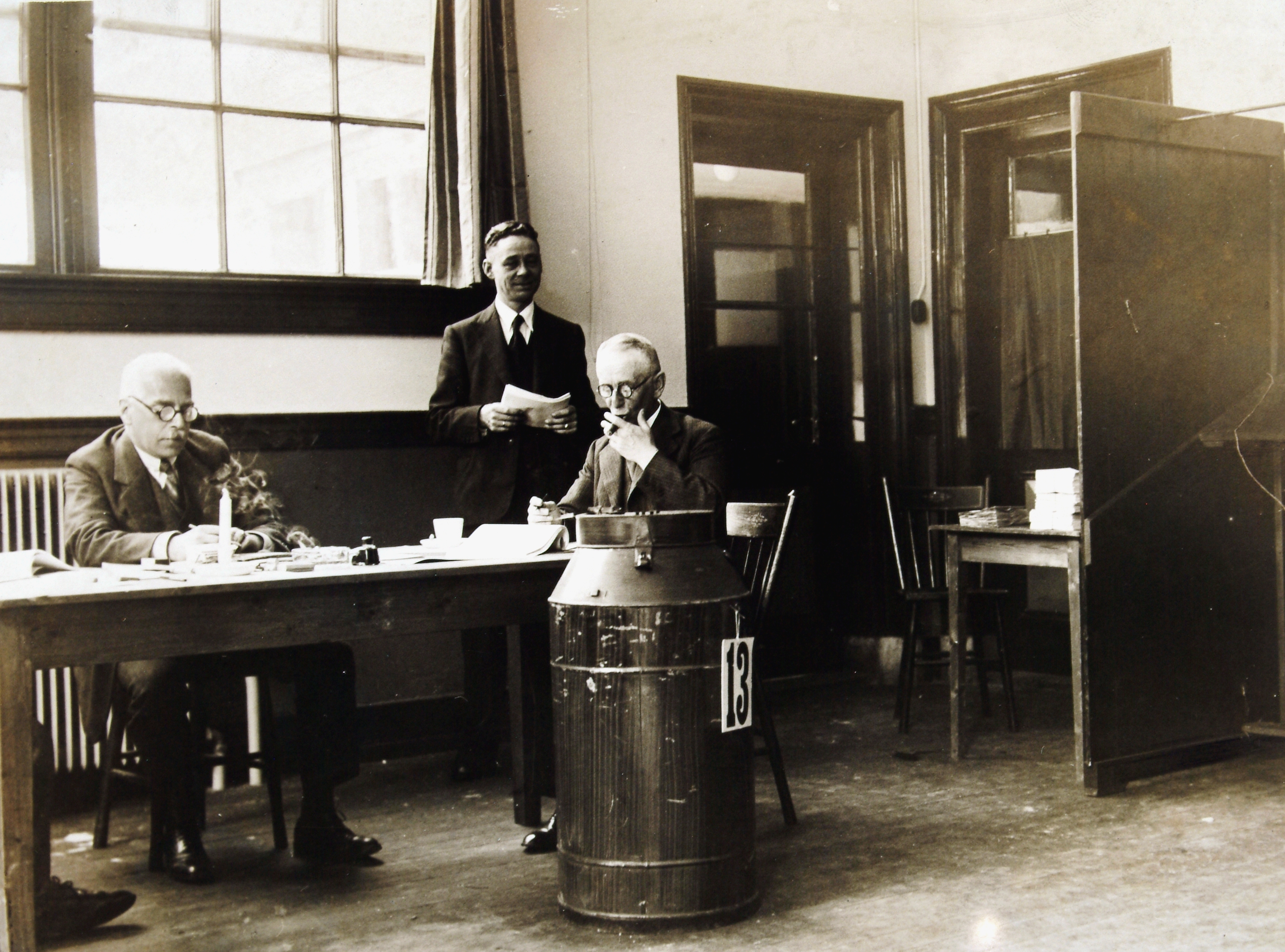 H. Van Gijn als voorzitter van een stembureau.