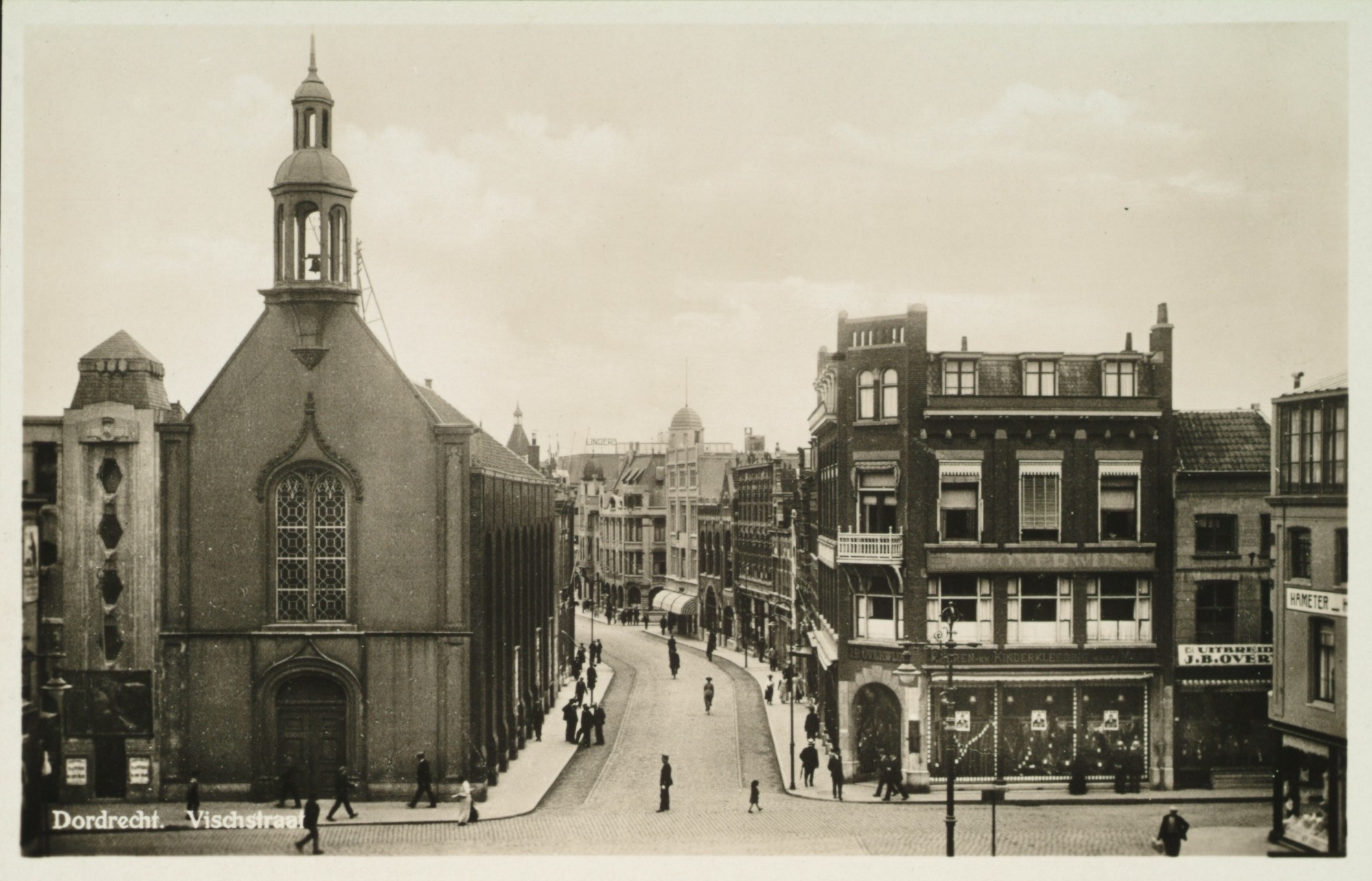 De Visstraat met de Waalse kerk op de hoek van de Voorstraat