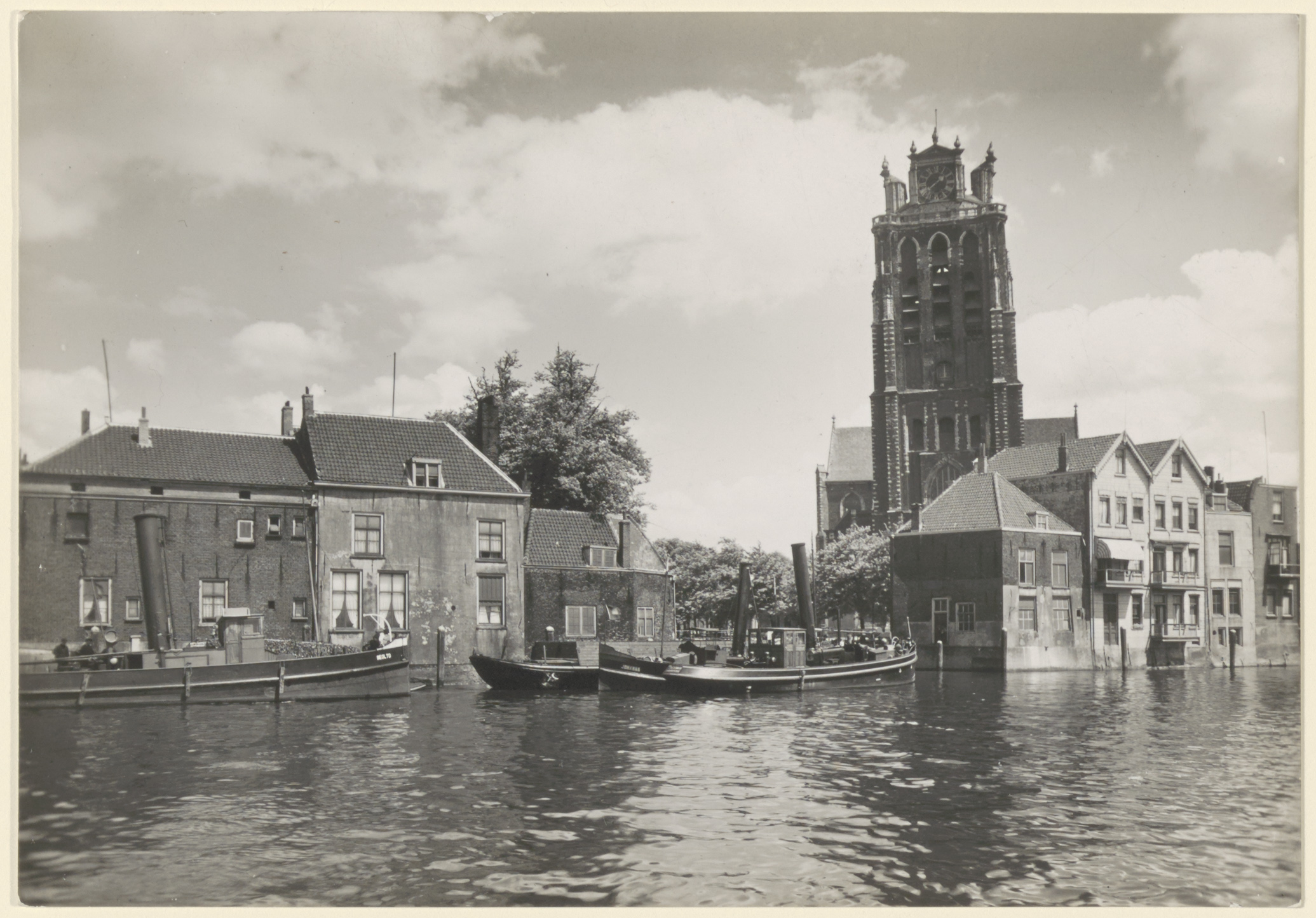 - De Bomhaven richting Grote Kerk. Links de achterzijde van de Korte Geldersekade.