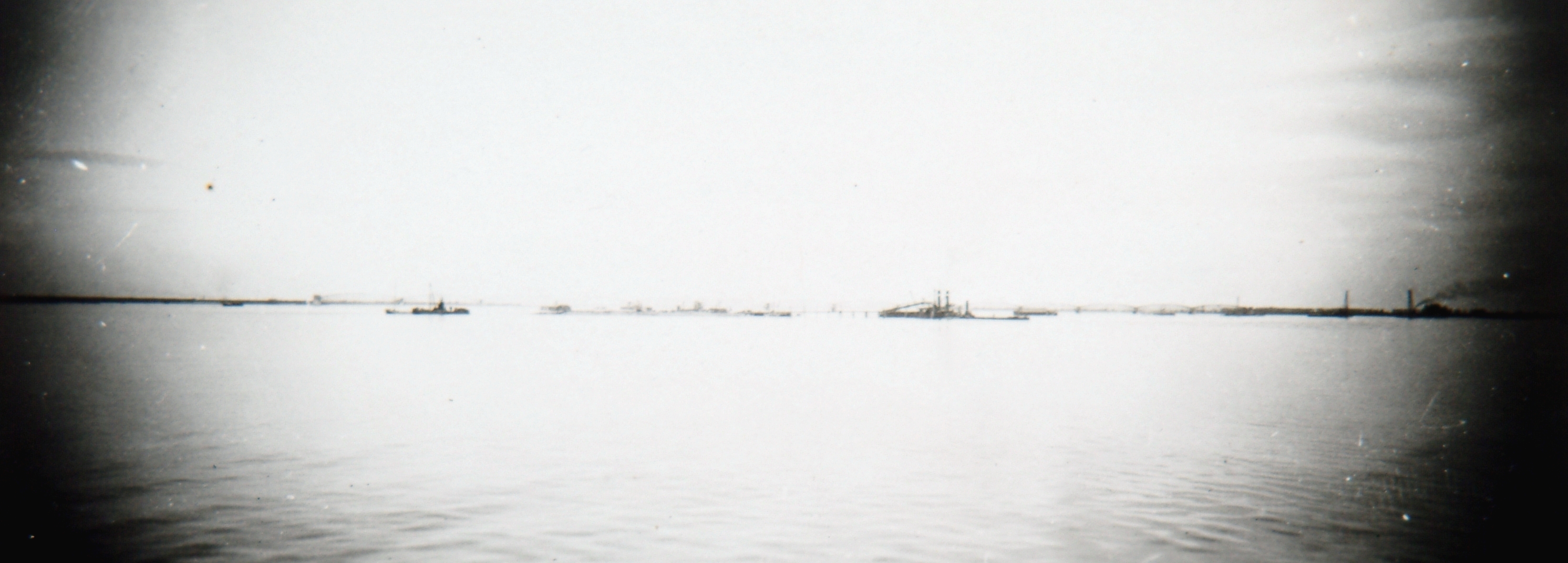 De firma Bos-Kalis aan het werk aan de strekdam voor de aanleg van de verkeersbrug over het Hollandsch Diep.