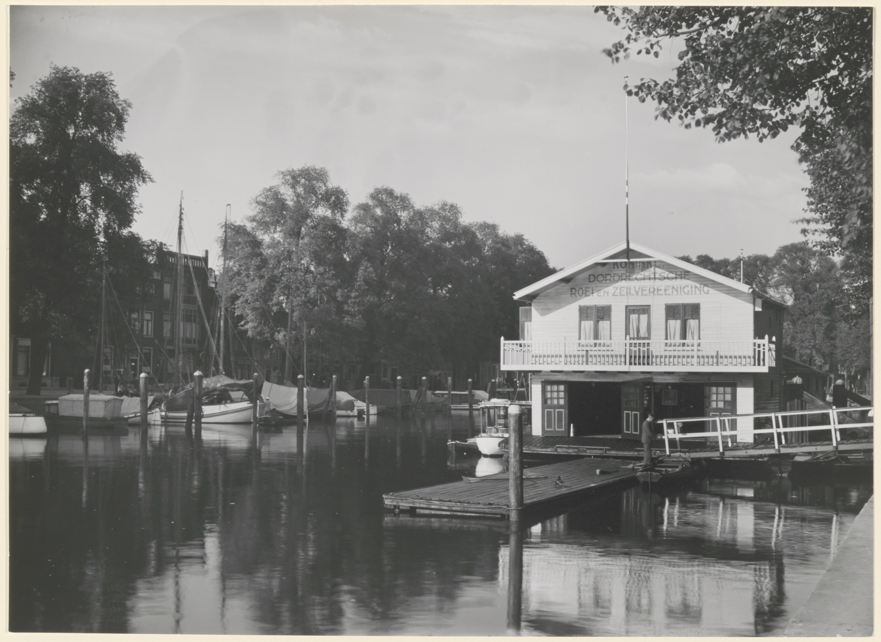 De Nieuwe Haven met het clubgebouw, annex botenhuis van de Koninklijke Dordrechtsche …