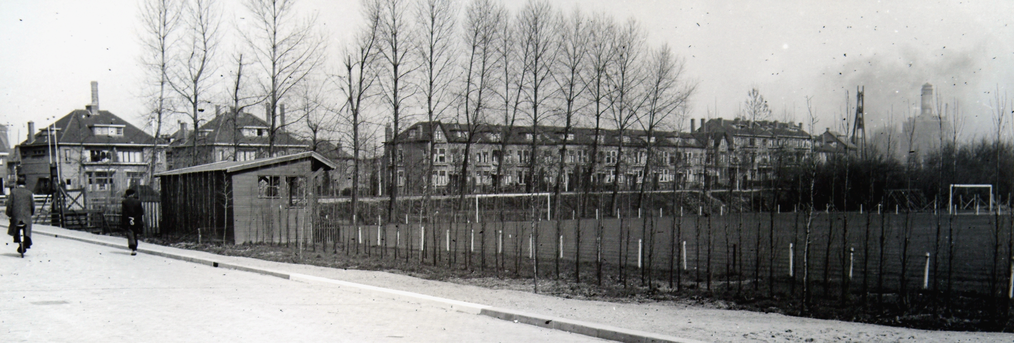 Voetbalveld D.B.v.L.O. gezien vanuit de Bankastraat naar de Oranjelaan.