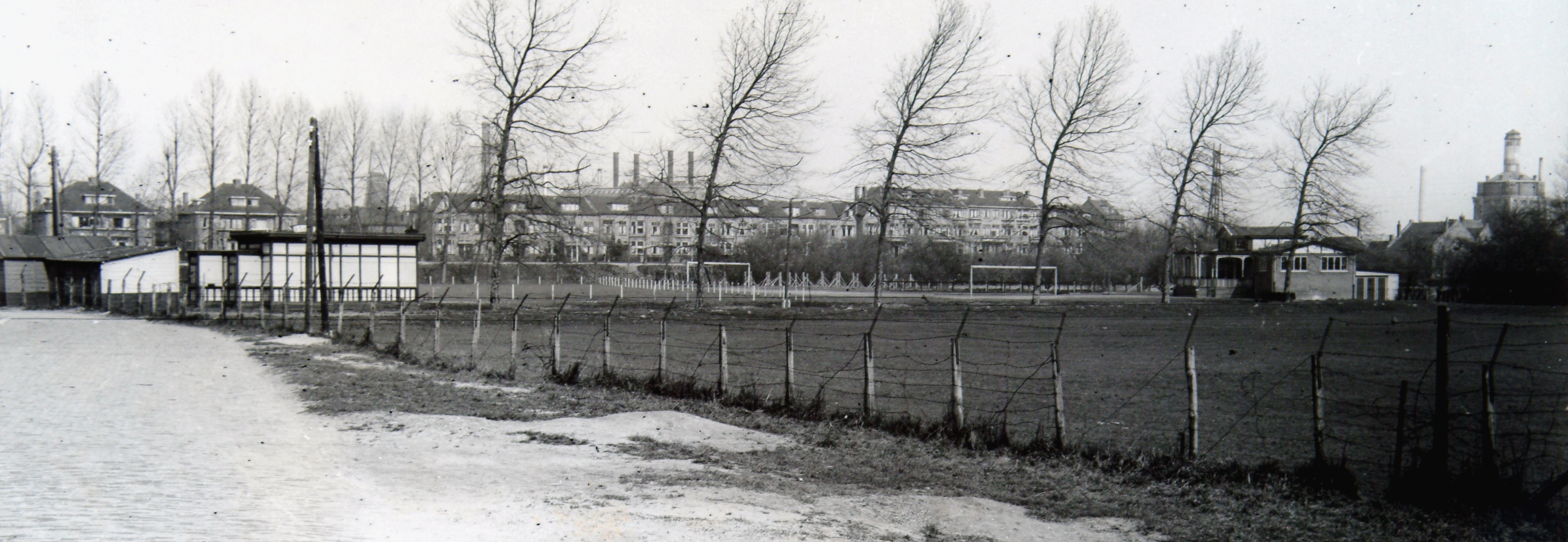 - Voetbalveld D.B.v.L.O. in de hoek Bankastraat/Oranjelaan. Vanuit de Bilitonstraat bij de ingang van de ijsbaan naar de Oranjelaan gezien.