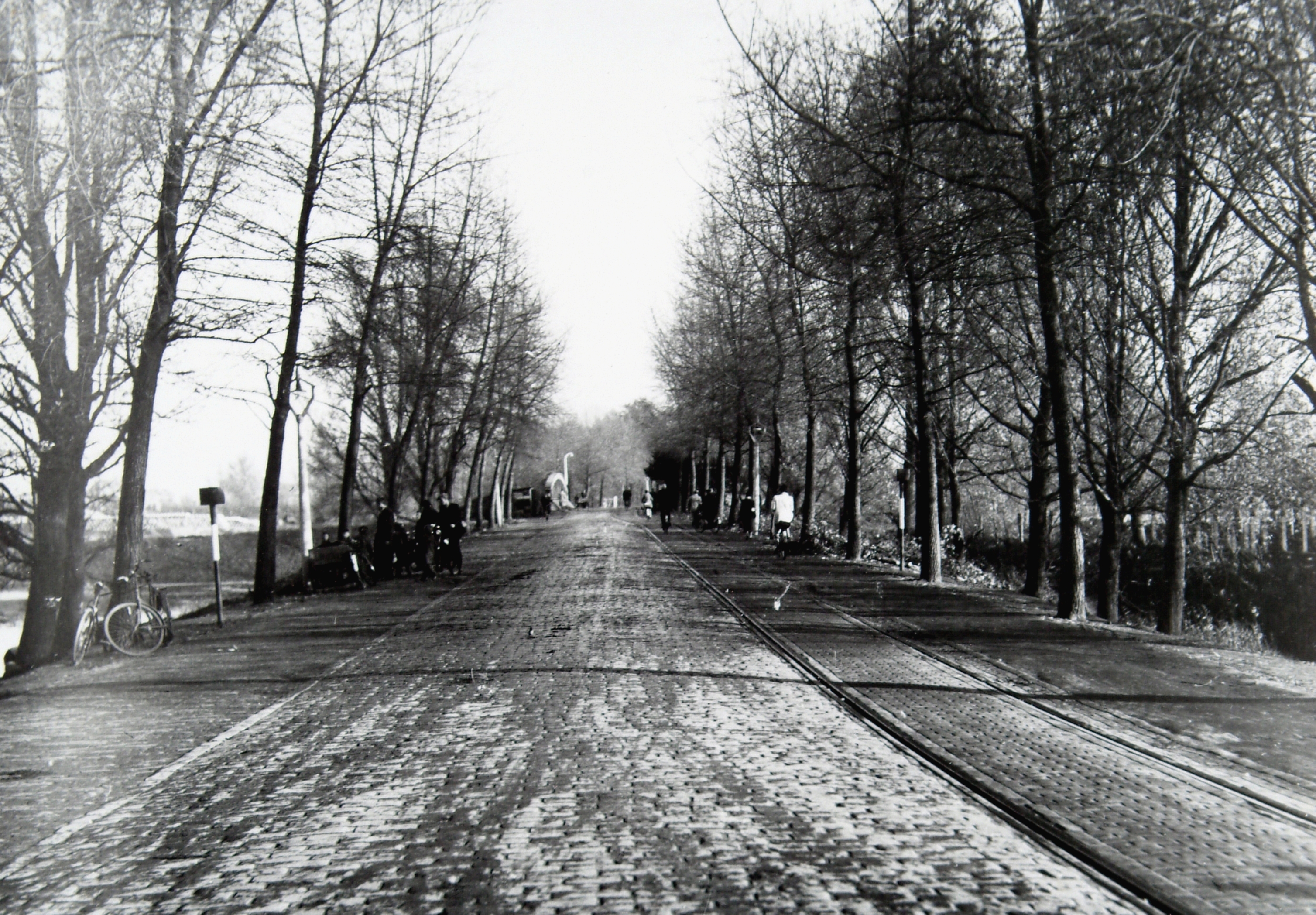 Oranjelaan vanaf de Noordendijk in de richting van de brug over de Vlij. Eind 1941 …