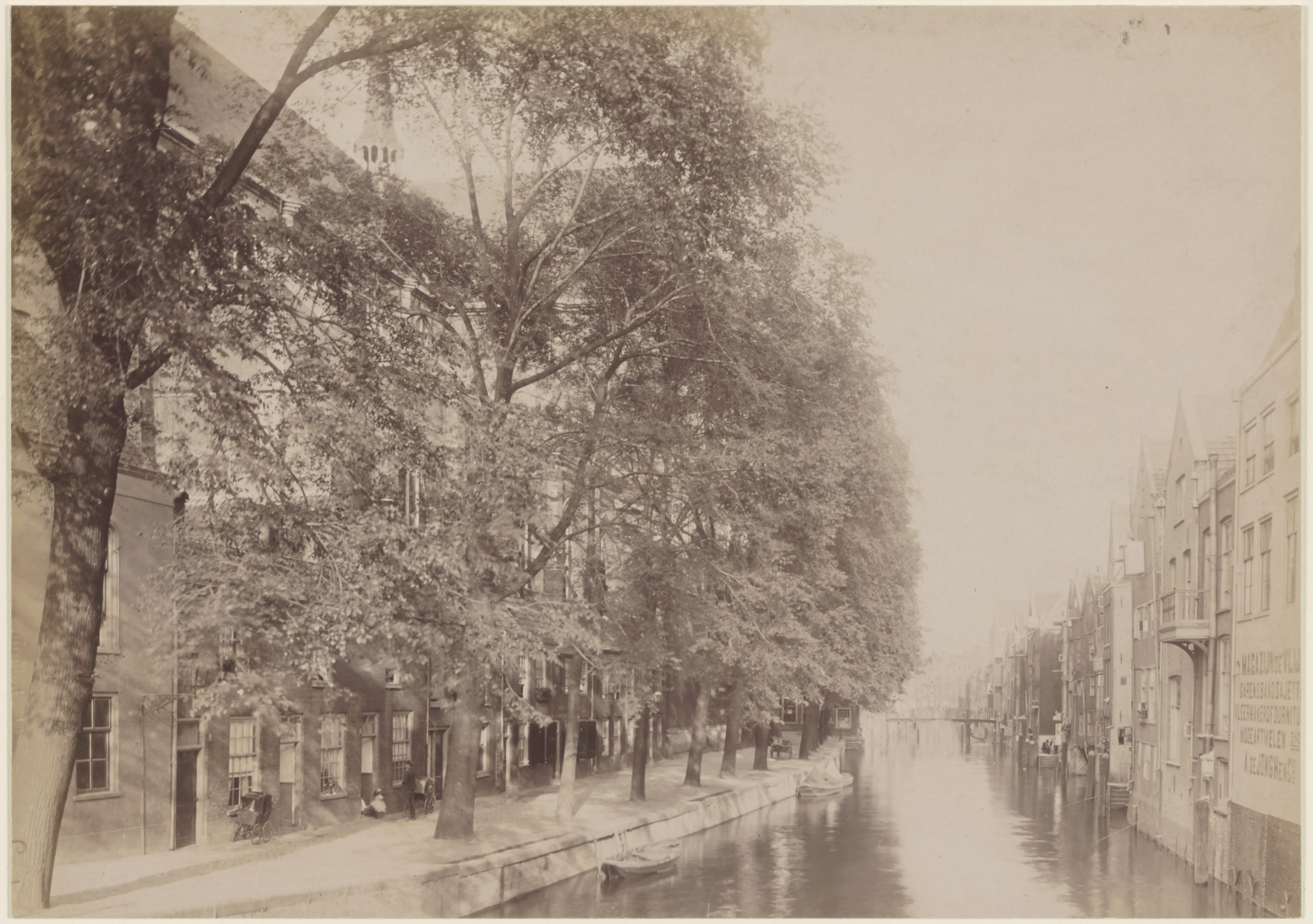 De Voorstraatshaven tussen de Pottenkade (links) en de Voorstraat, gezien vanaf de Leuvebrug richting Pelserbrug.
