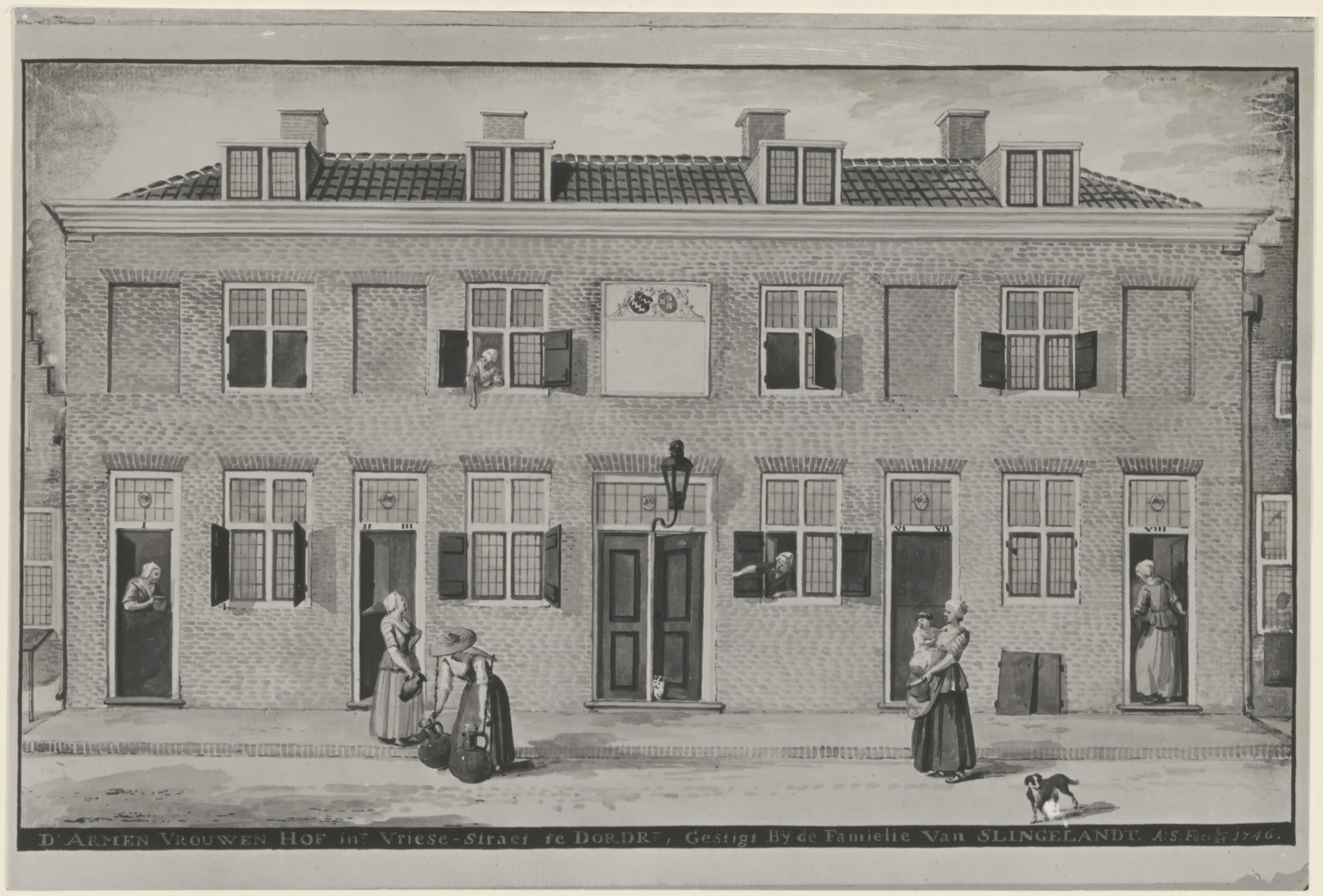 Getekend Van Slingelandtshof aan de noordoostzijde van de Vriesestraat, tussen de Dwarsgang en de Lindenstraat.