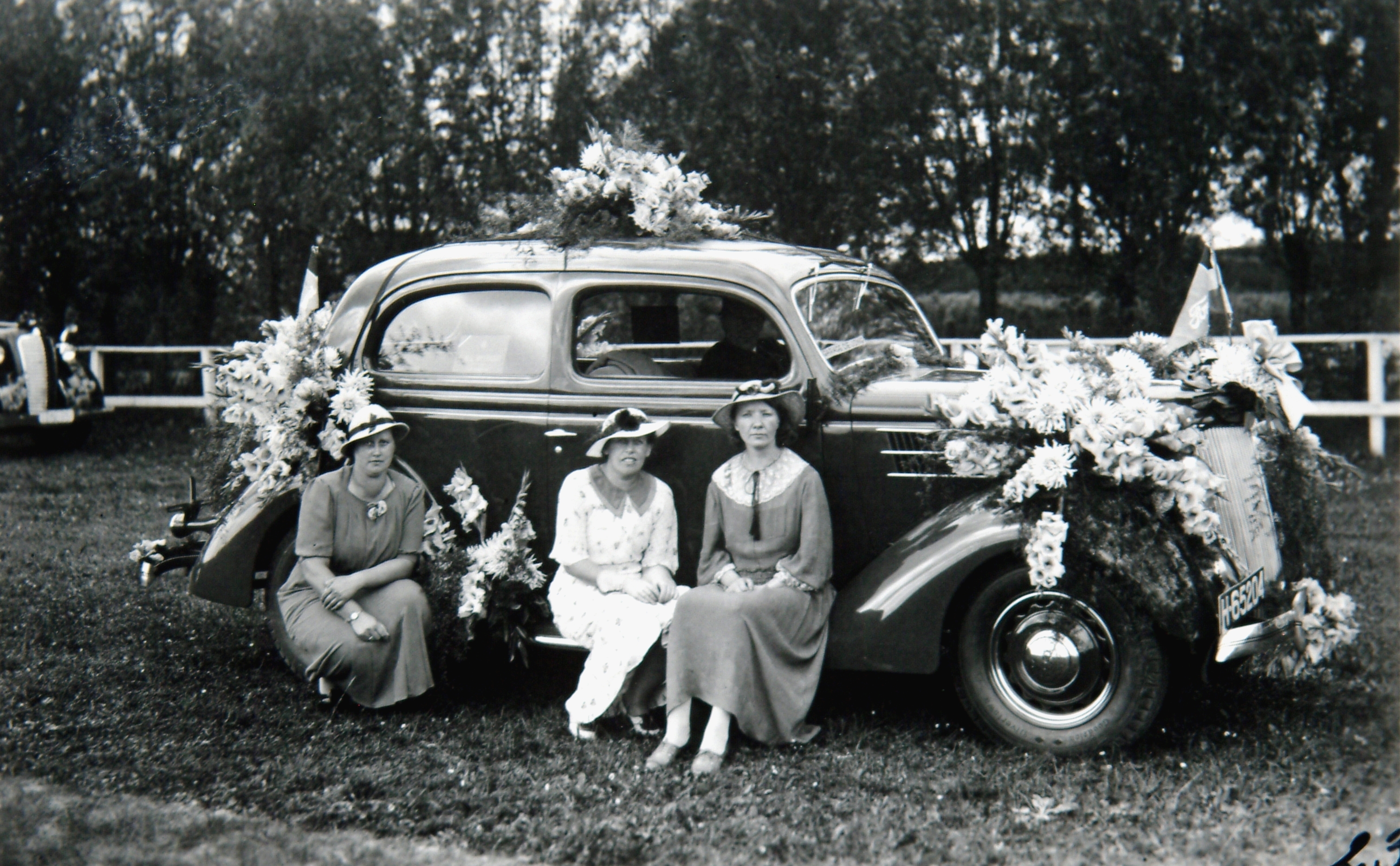 - Deelnemers aan het bloemencorso tijdens Oranjedag.
