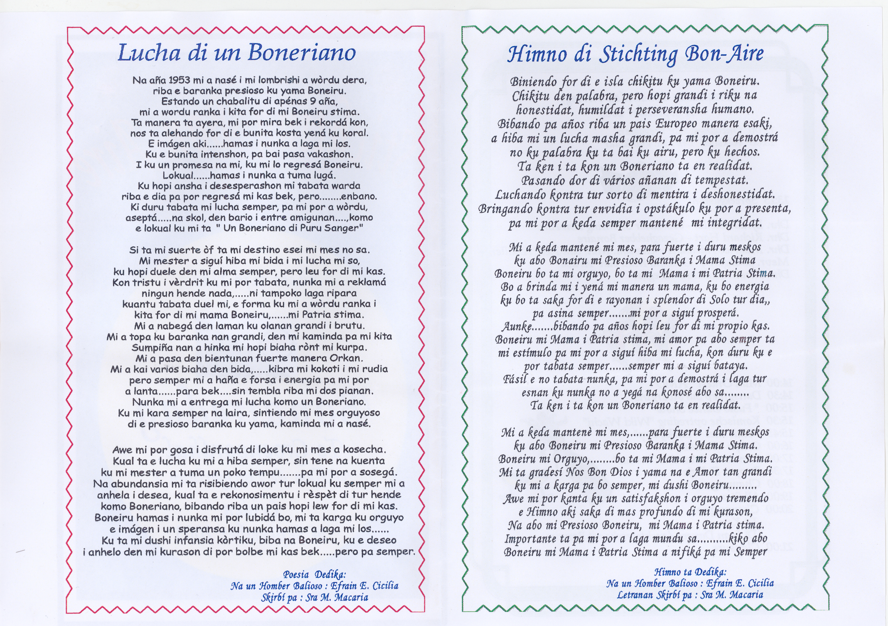 Gedicht over Efrain Cicilia en volkslied van Stichting Bon-Aire