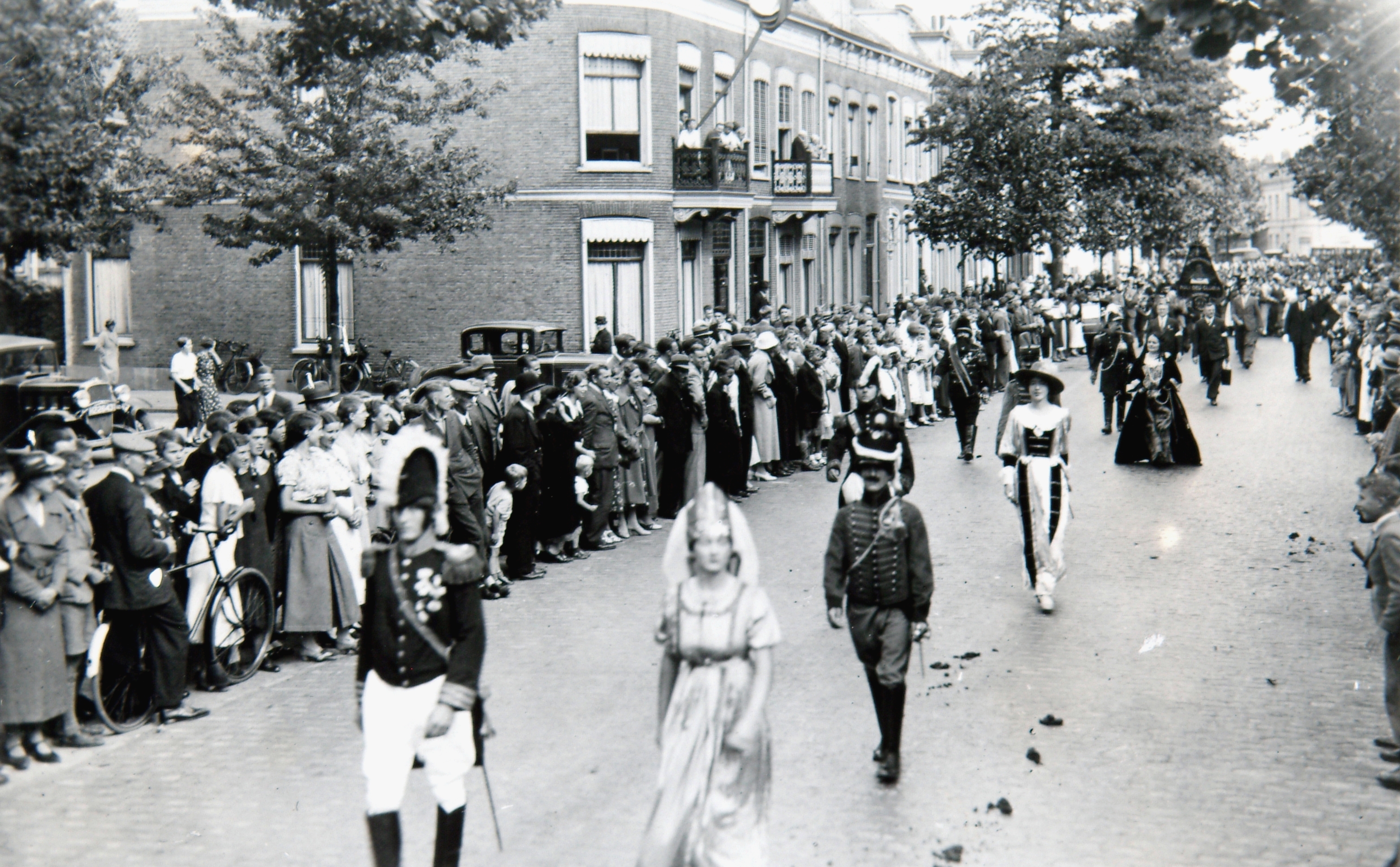 Een op Oranjedag door muziekkorps De Princevlag organiseerde gekostumeerde optocht op …
