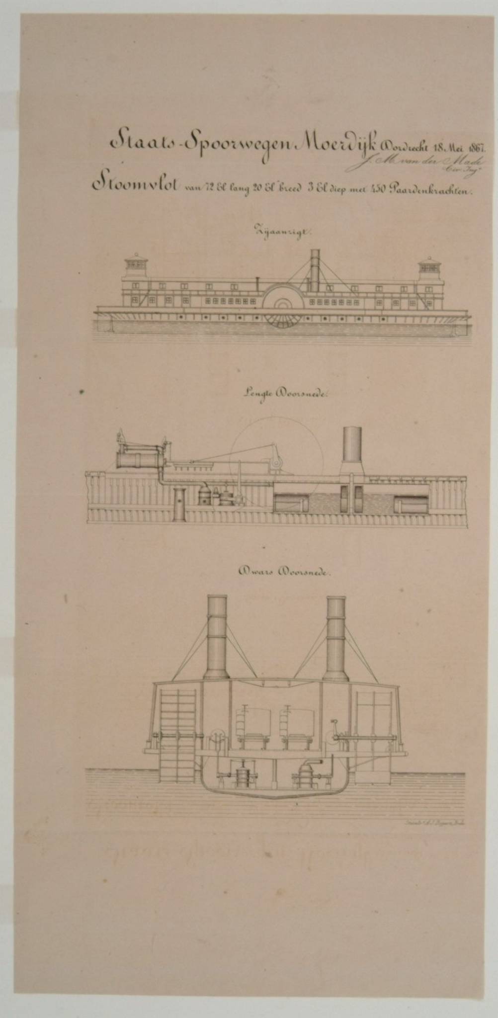 - Schetsen van stoomvlotten, behorende bij het advies aan de Kamer van Koophandel en Fabrieken te Dordrecht door J.M. van der Made, civiel-ingenieur, van 18 mei 1867, over een vaste brug of de inzet van stoomvlotten over het Hollandsch Diep ten behoeve van de Staatsspoorwegen.