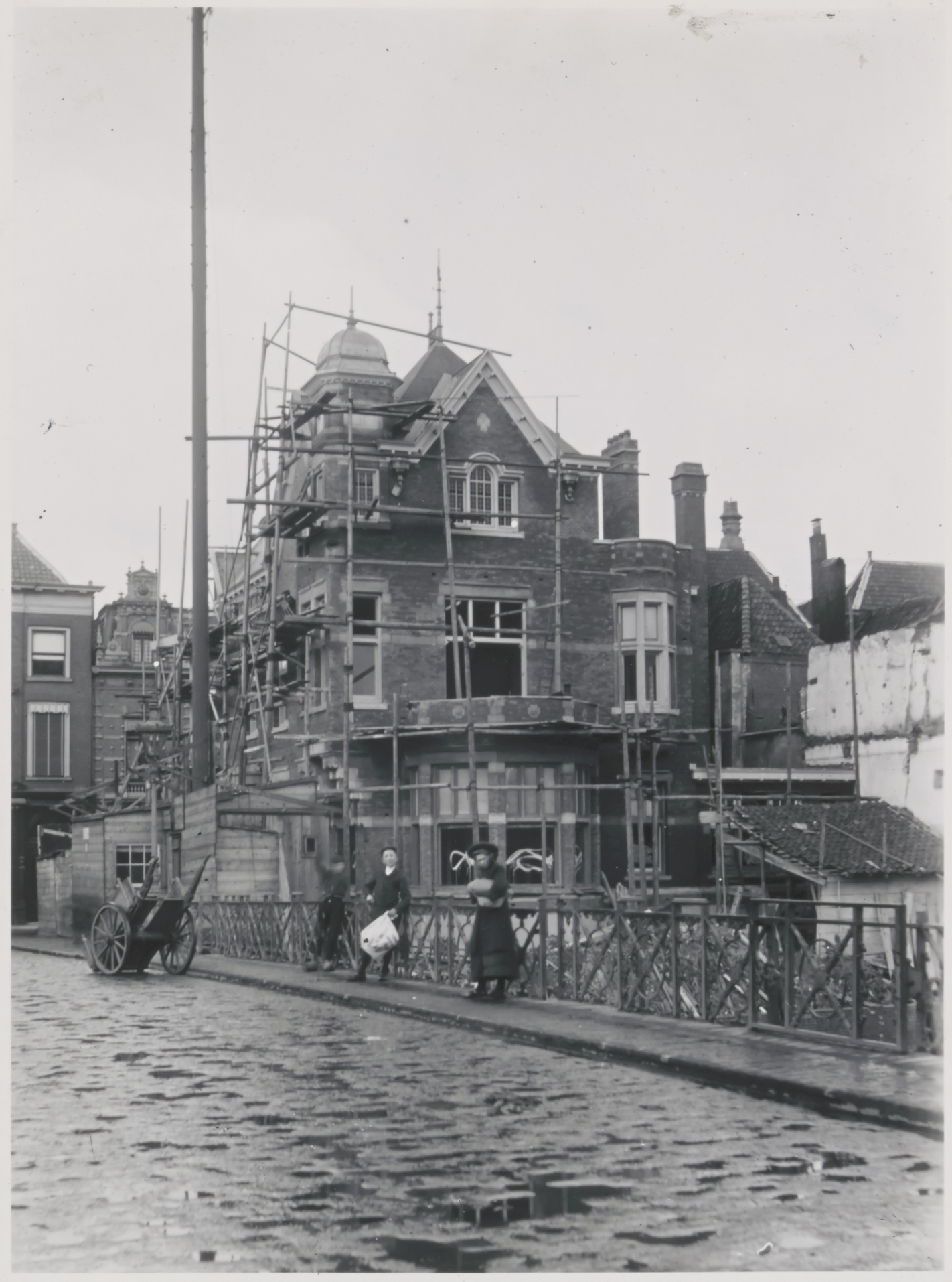 Het huis Cronenburch aan de oostzijde van de Wijnstraat op de hoek van de Nieuwbrug.