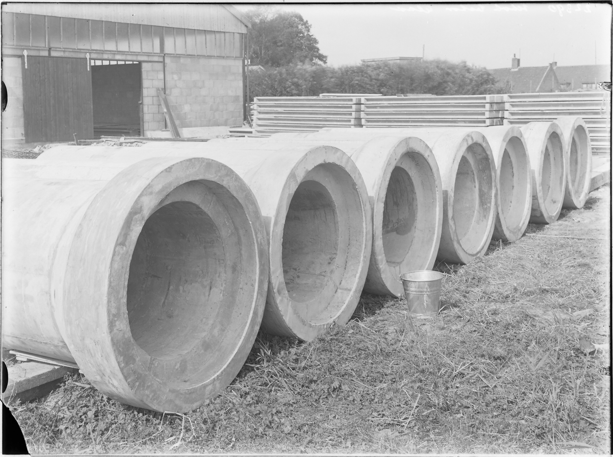 - Opslagterrein met rioolbuizen van NV Schokbeton te Zwijndrecht