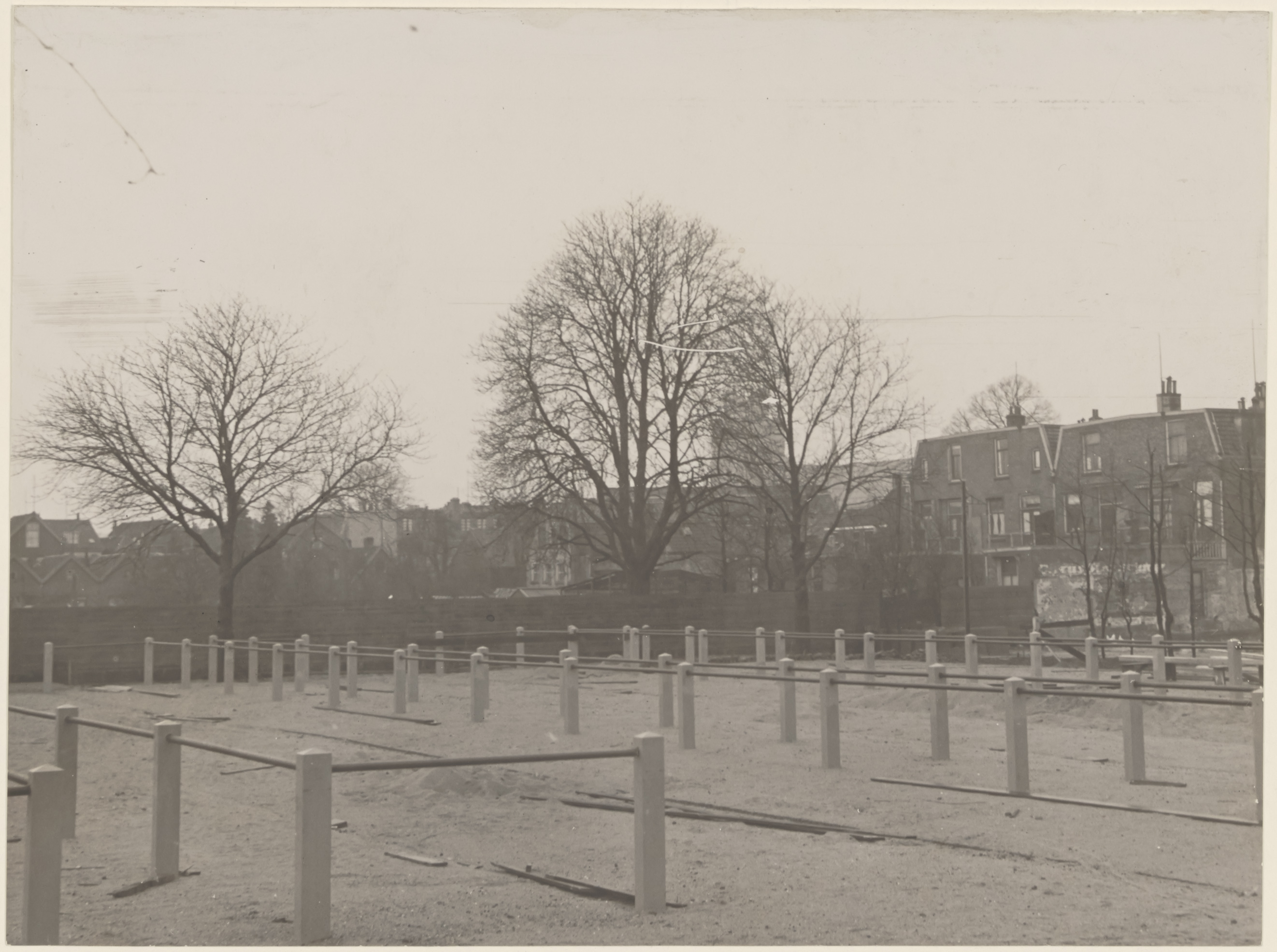 Veemarktterrein aan de Cornelis de Wittstraat (rechts), links de achterkant van huizen …