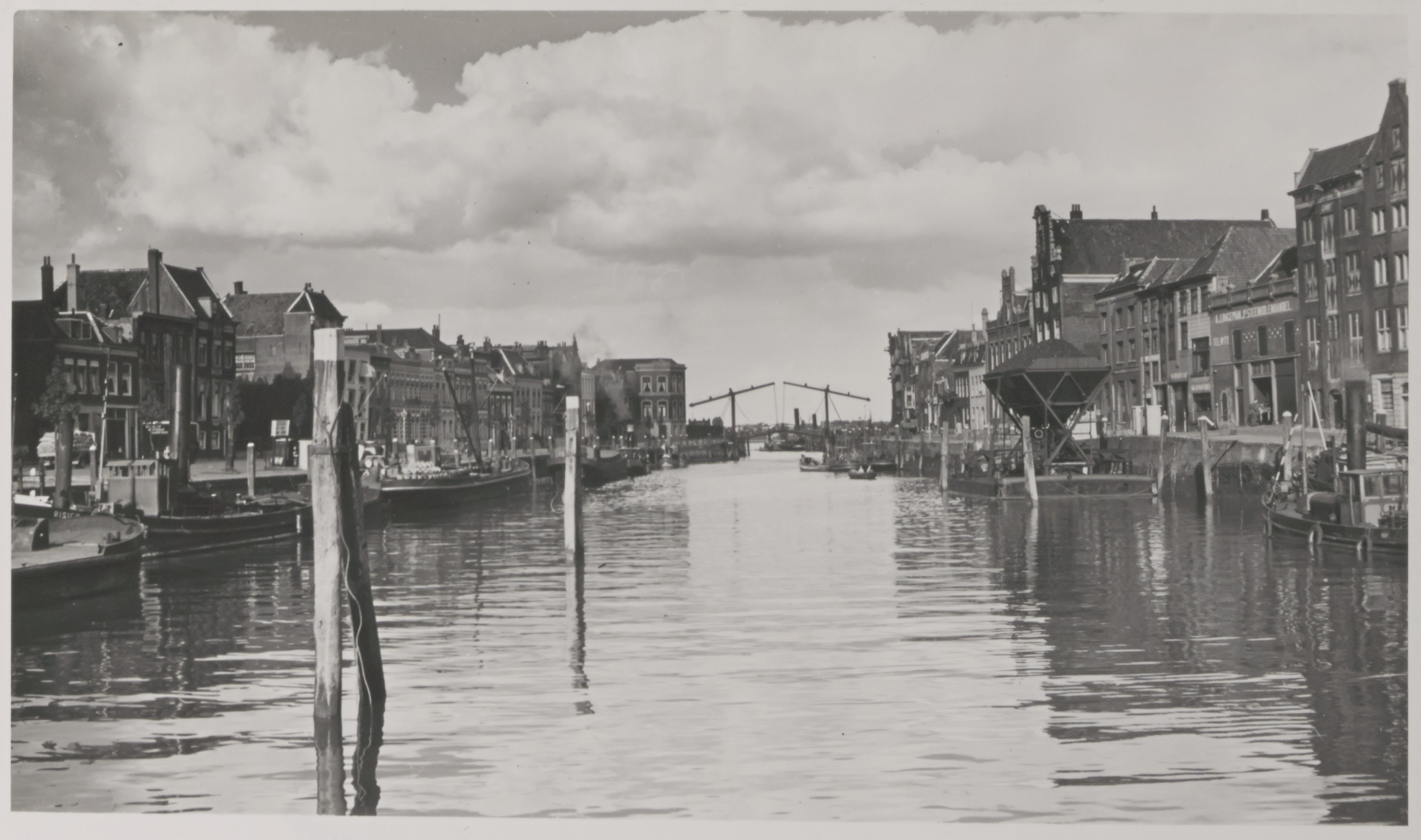 - De Wolwevershaven van het Vlak richting Damiatebrug. Rechts de Kuipershaven.