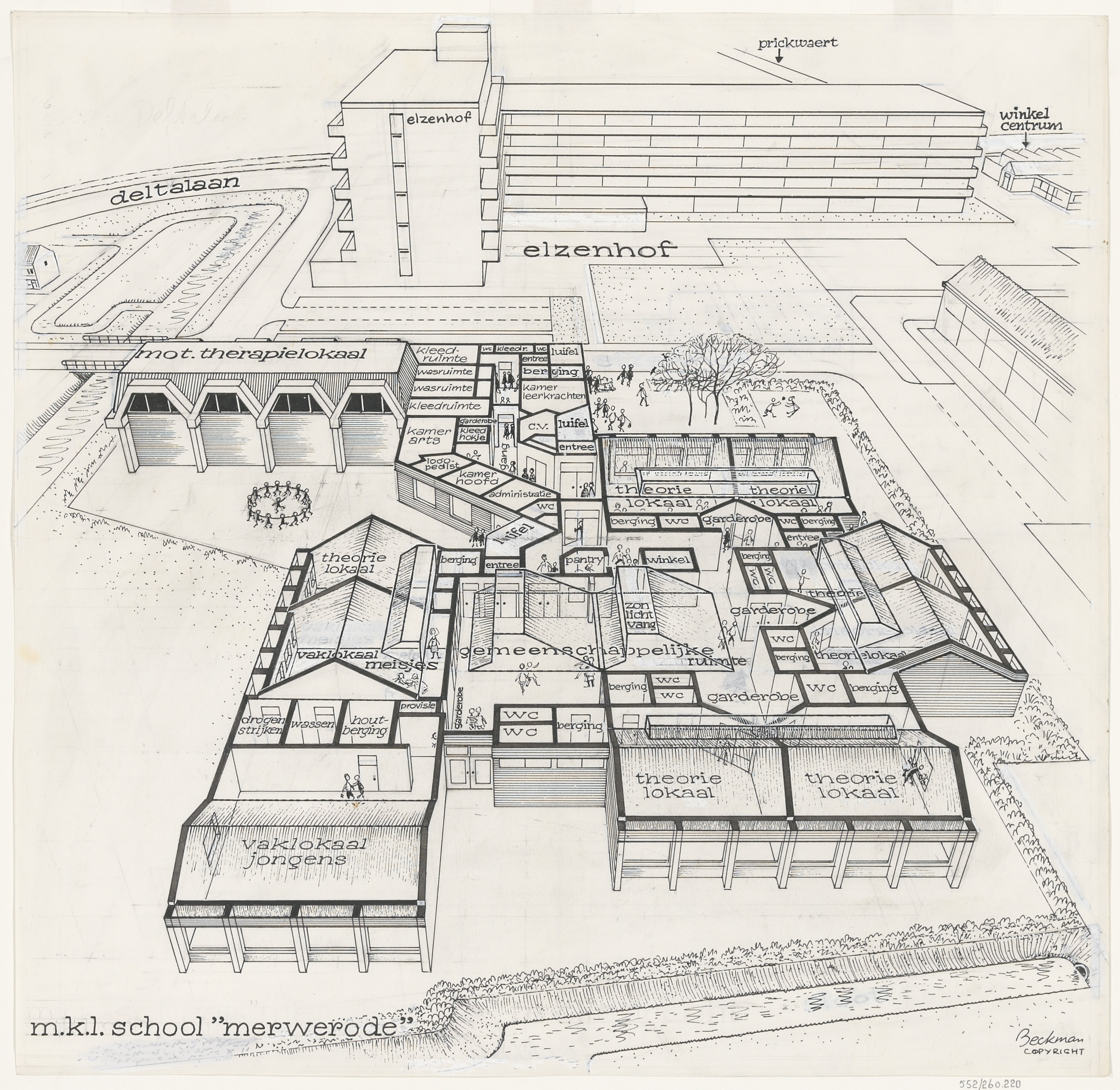 - Een plattegrond in vogelvlucht van m.k.l. school Merwerode bij de Elzenhof in Sliedrecht.