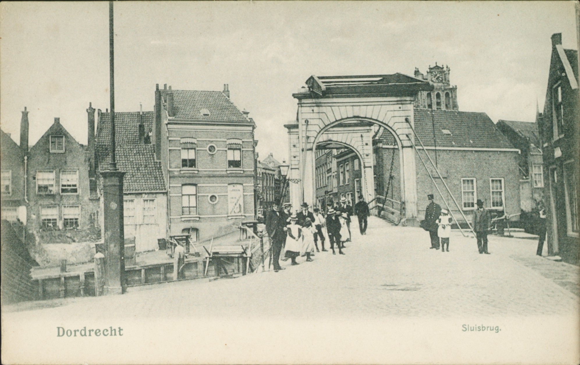 - De Zuidersluisbrug over de Spuihaven gezien vanuit de Sluisweg, richting Prinsenstraat.