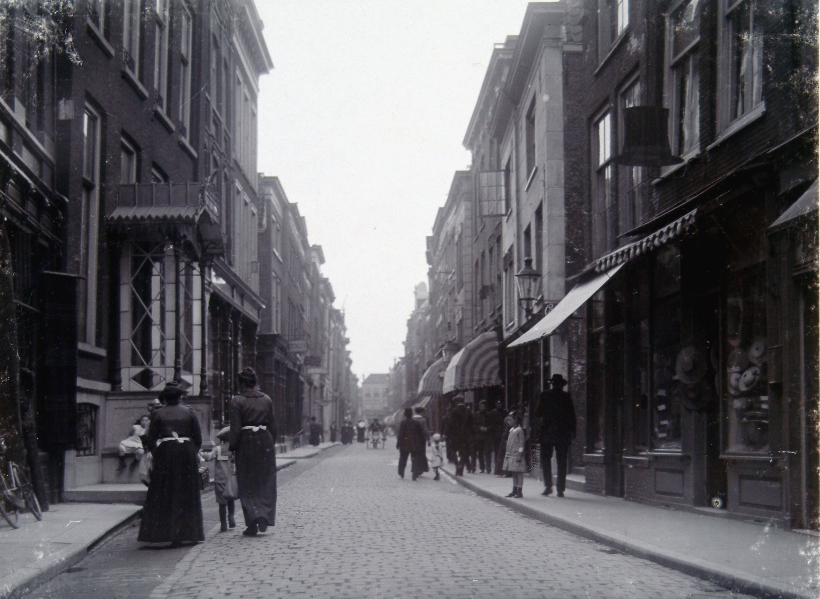 De Voorstraat vanaf de Grote Spuistraat in de richting van de Pelserstraat. op de …