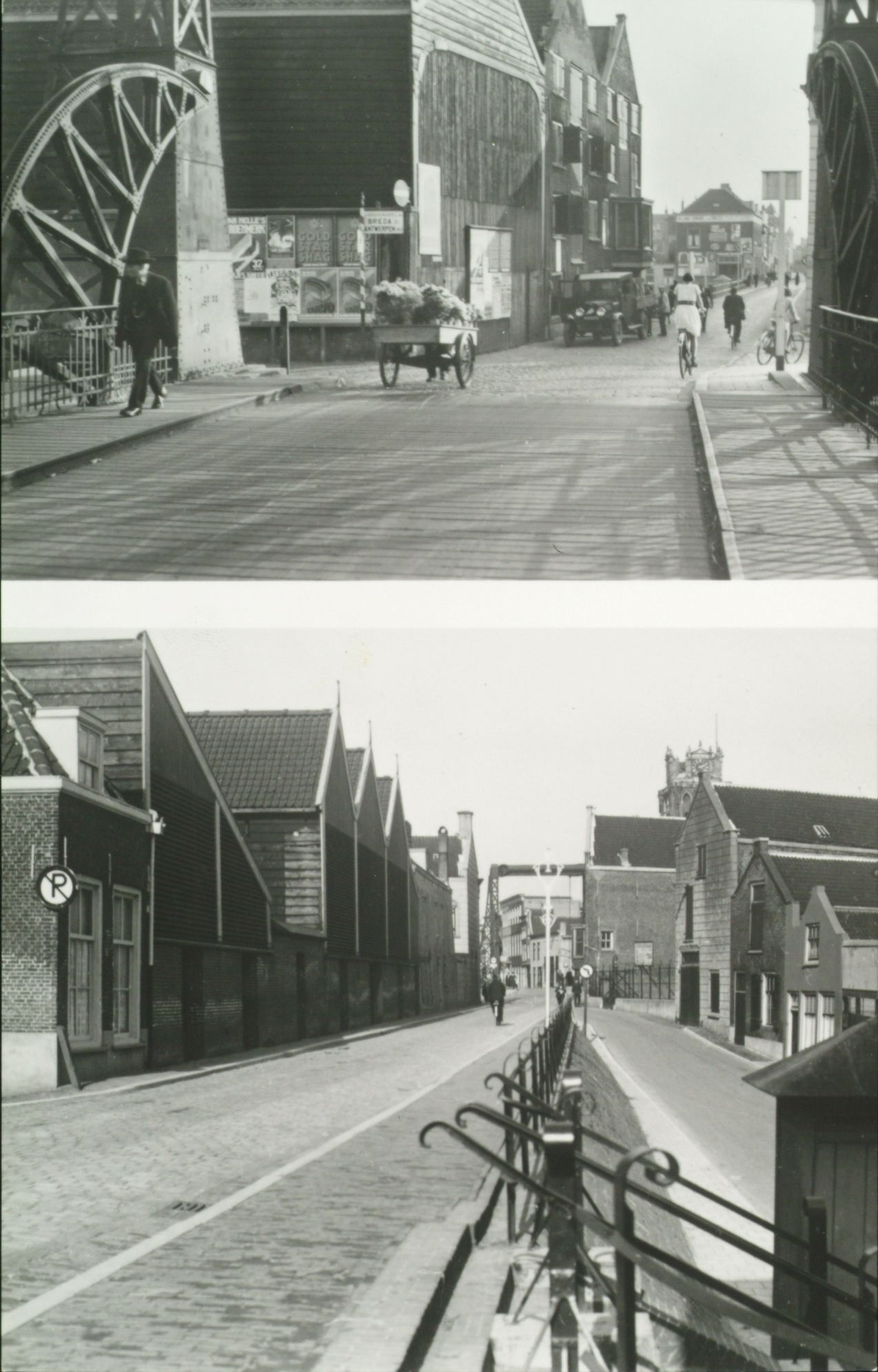 - bruggen fietsers handkarren reclameborden vrachtwagens