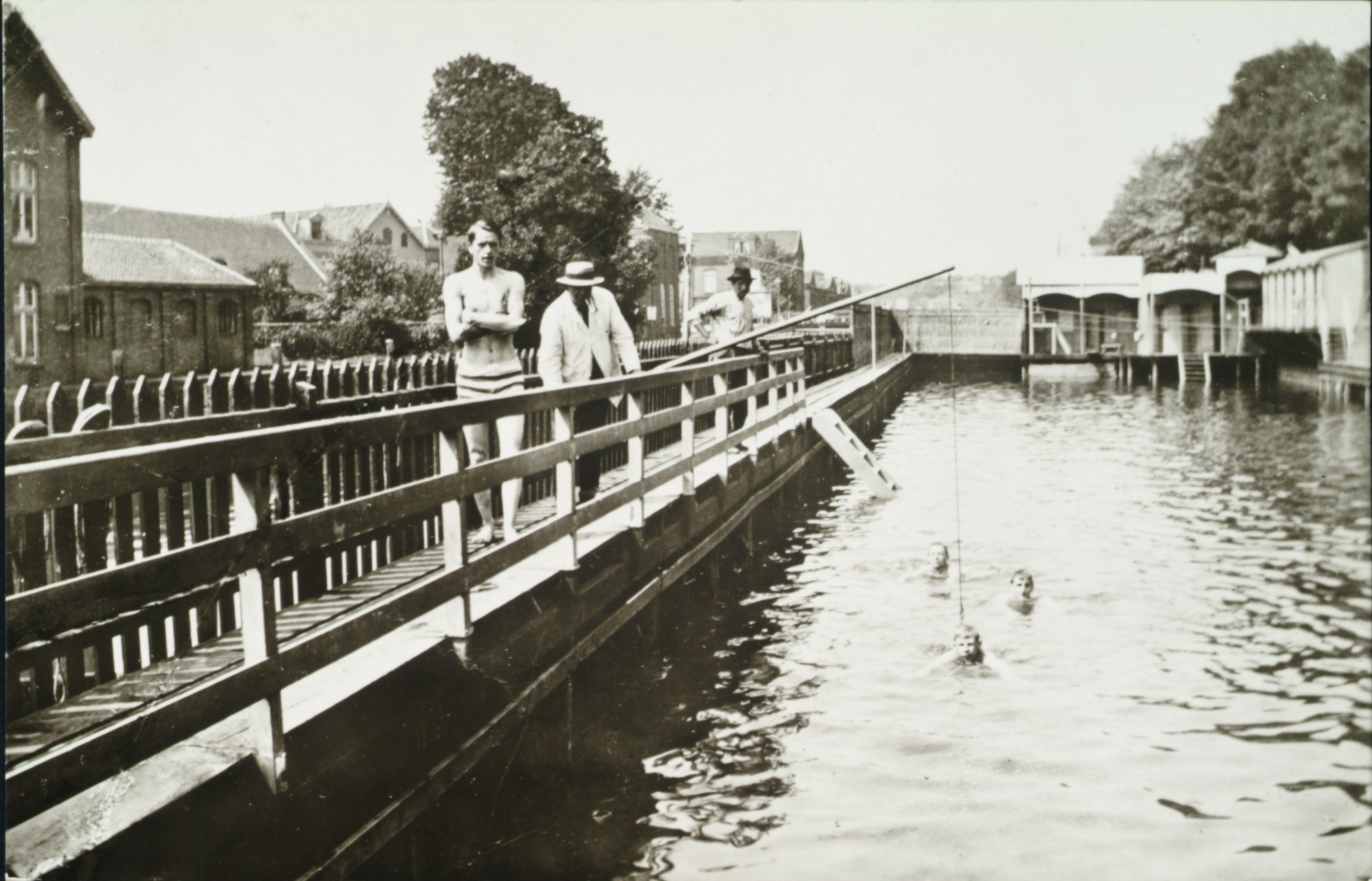 De particuliere zwemschool aan de Vest nabij de Spuibrug.
