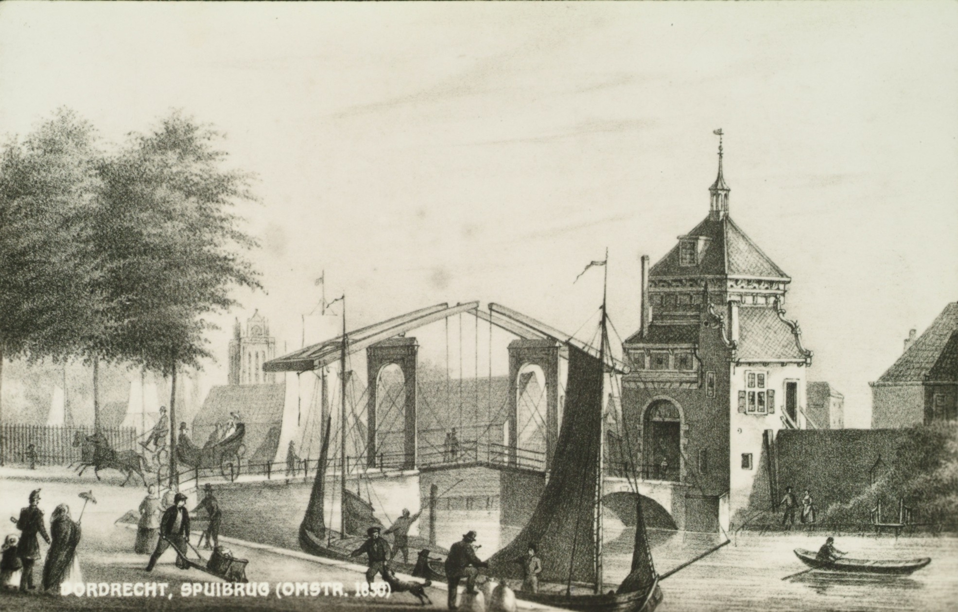 De Spuibrug omstreeks 1850