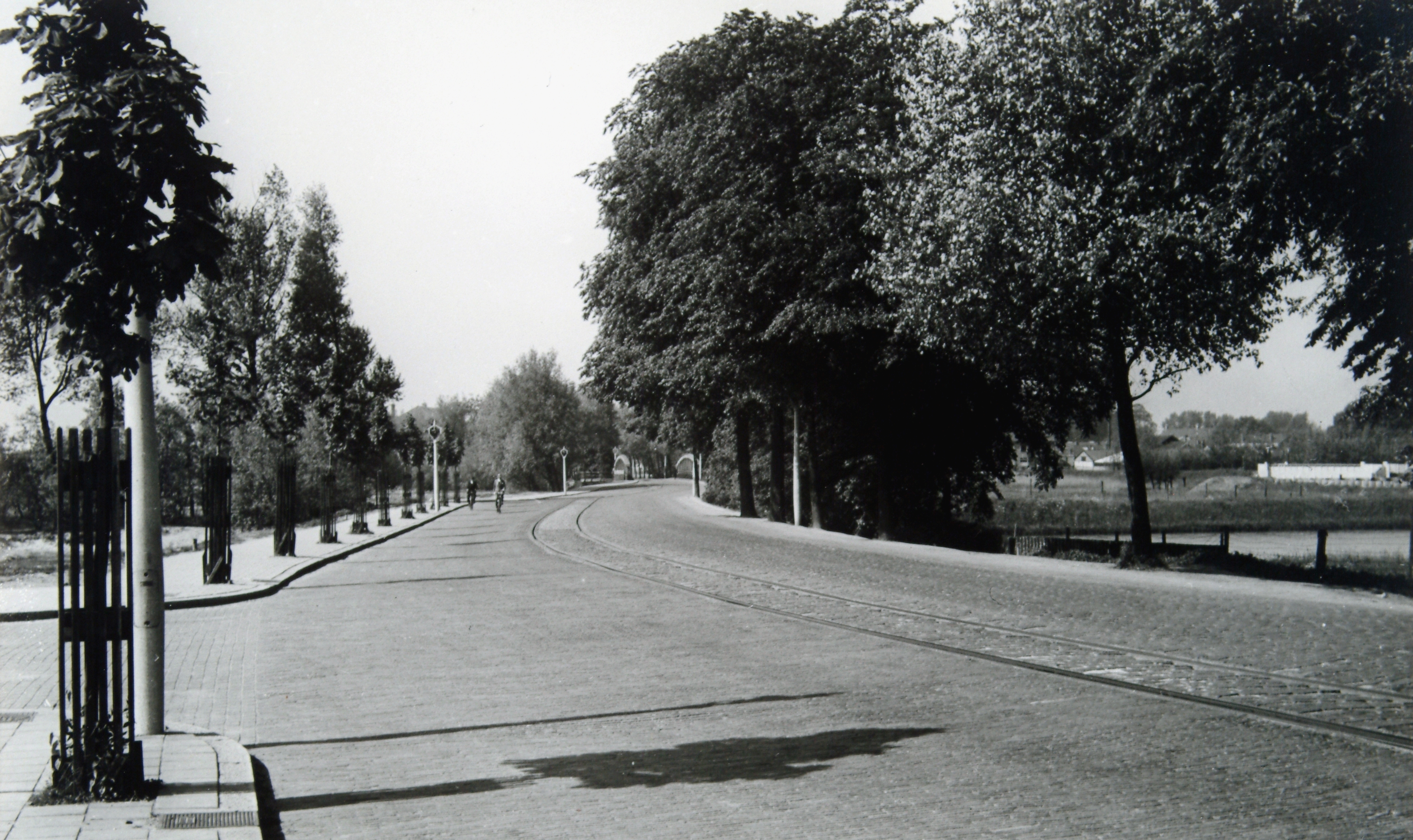 Oranjelaan van de Prins Hendrikbrug richting Vlijbrug. De rails zijn van het …