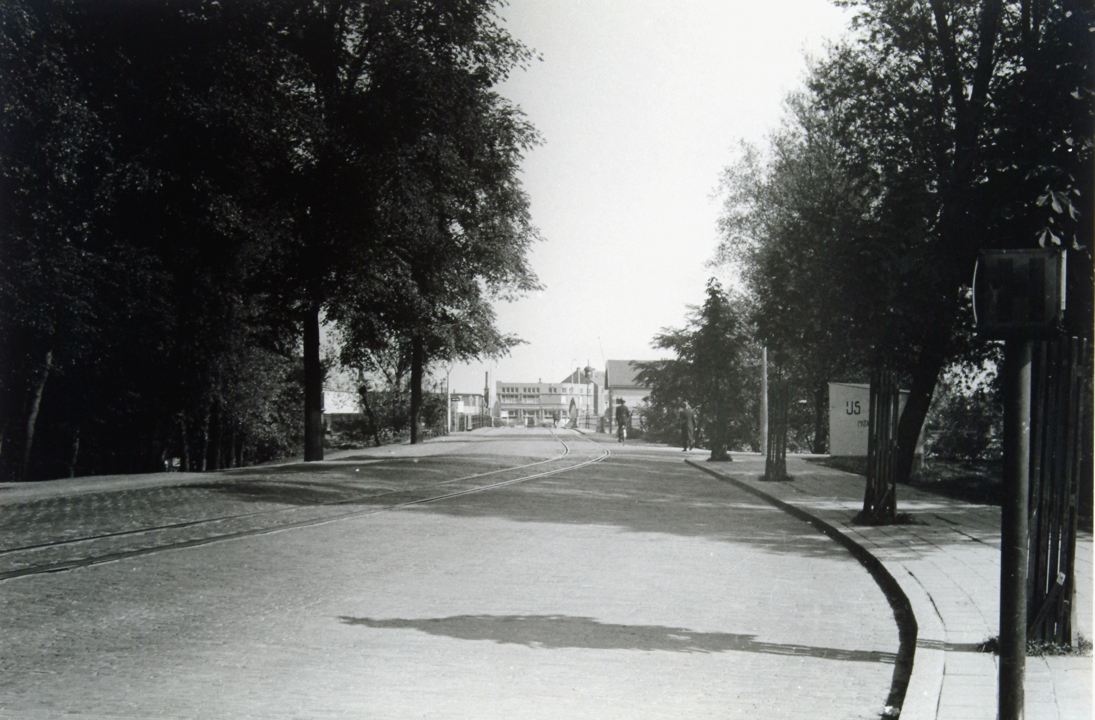- Oranjelaan naar Prins Hendrikbrug en Merwedestraat gezien. De rails zijn van het goederenspoor naar de Staart. Rechts de Badweg.