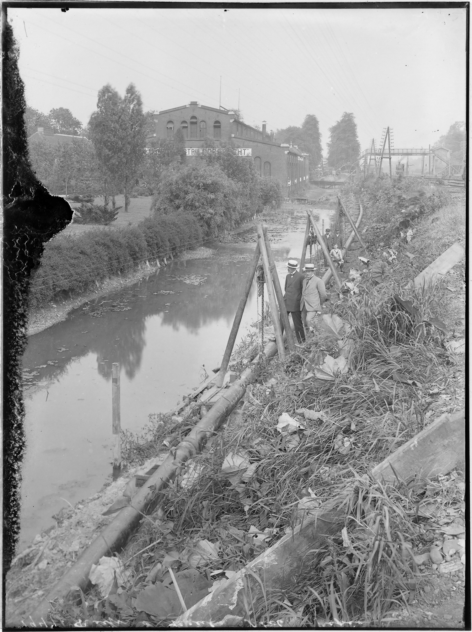 Aanleg van een gasleiding langs de sloot tussen de spoorwegdijk en wat later de Havenstraat zou heten