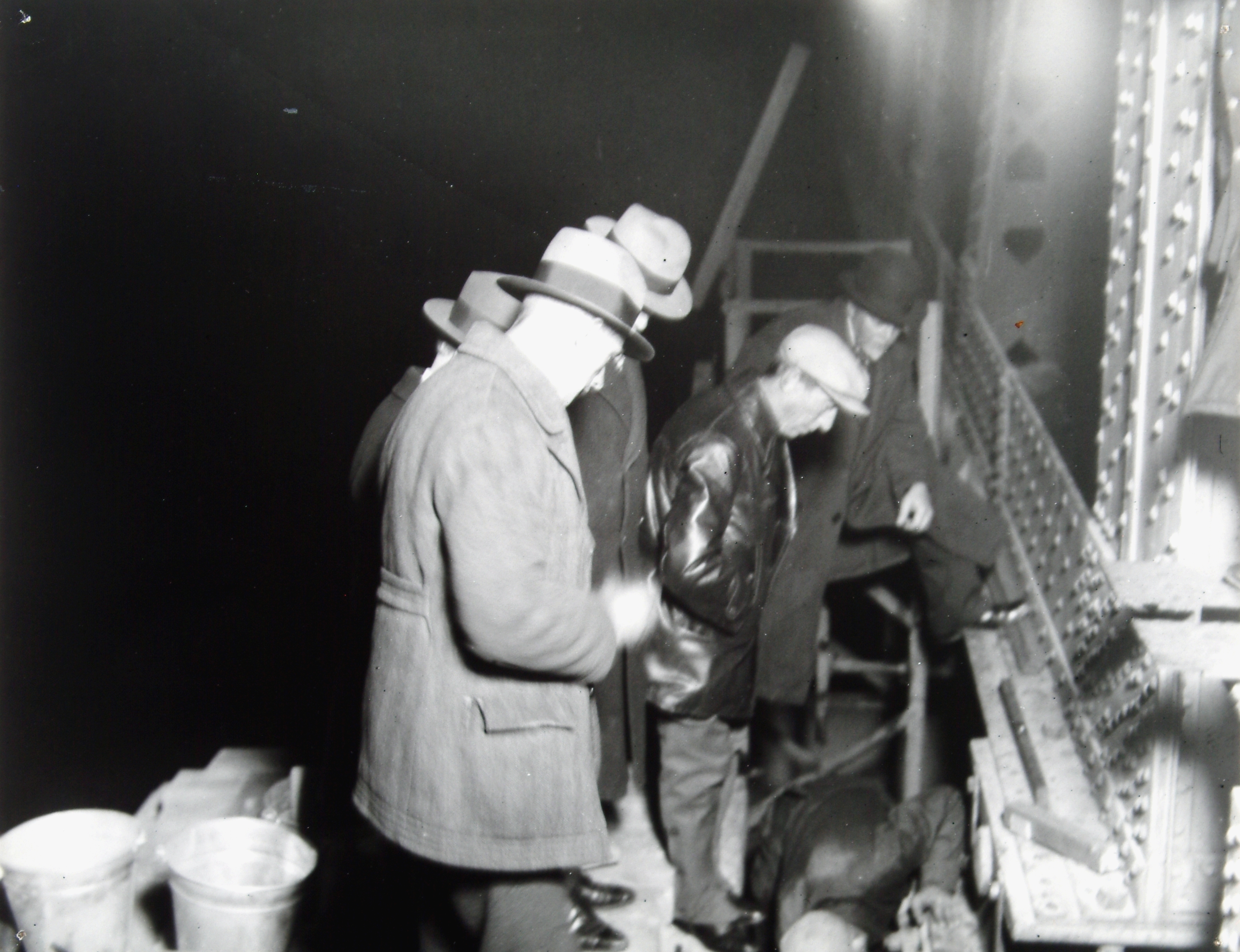Het omhoog brengen van de spoorbrug over het Hollandsch Diep.