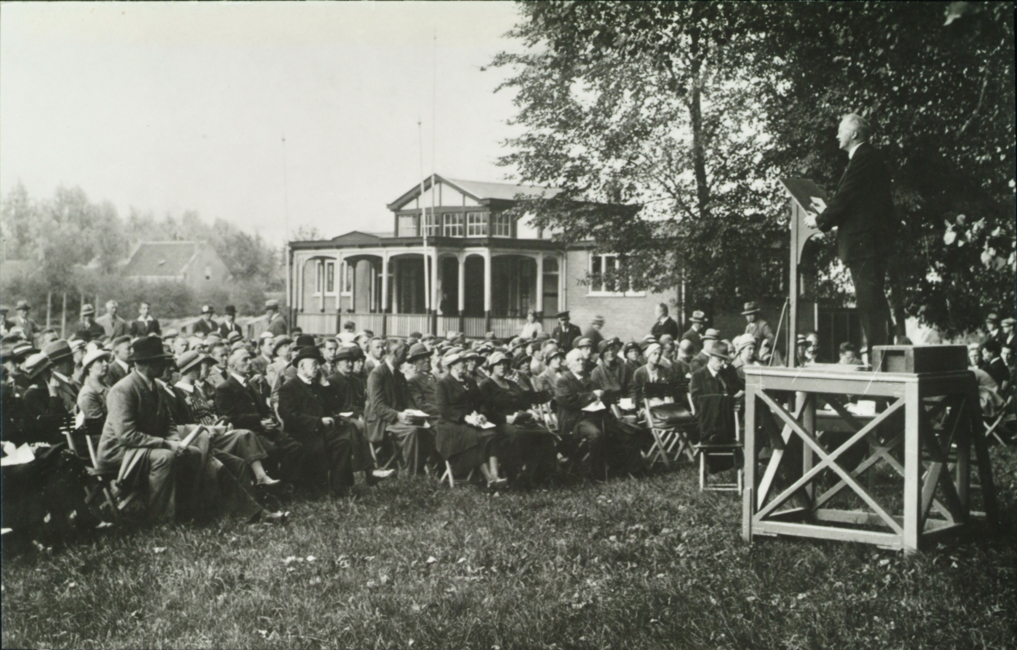 Openluchtsamenkomst van Kerk en Vrede op het terrein van DBvLO aan de Oranjelaan.