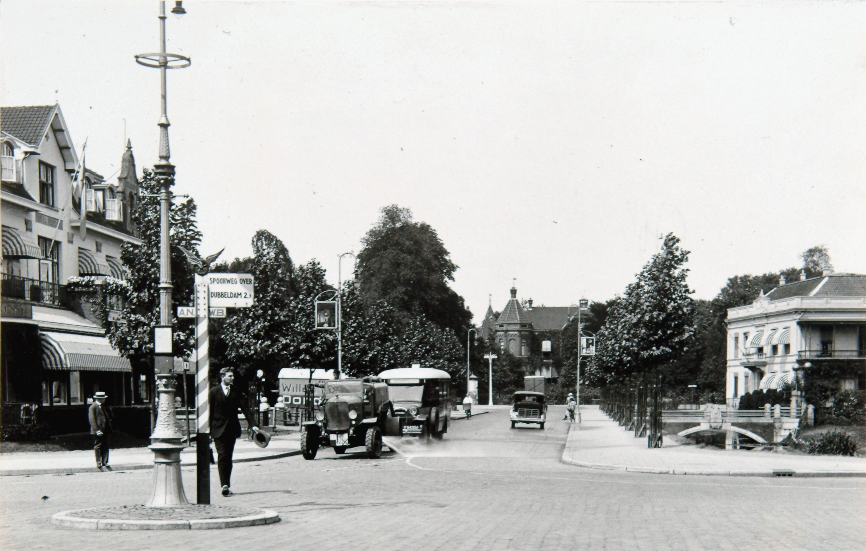 Het stationsplein en de Stationsweg. Links ligt hotel Ponsen.
