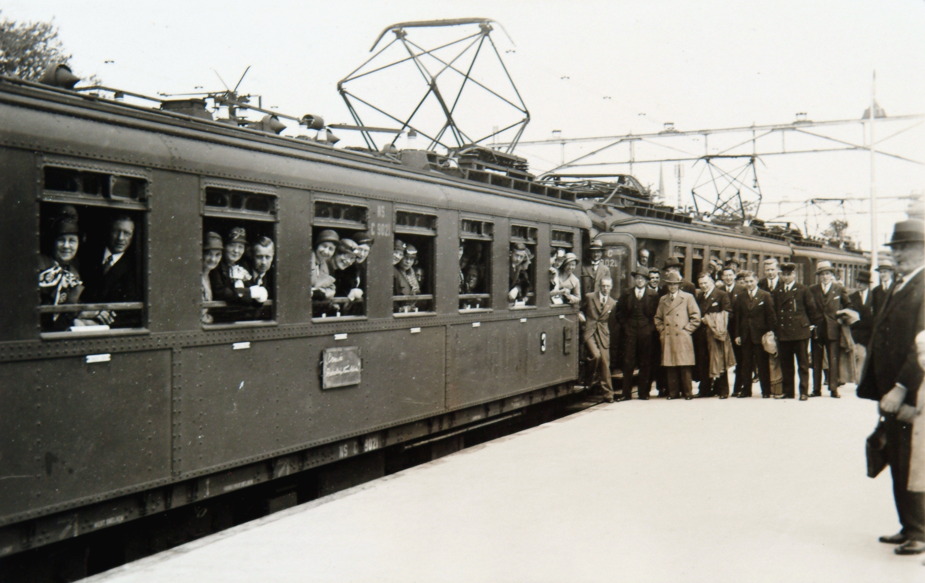 Hier nog met eerste, tweede en derde klasse wagons. Zie voor het vertrek van de eerste electrische trein van Dordrecht naar Rotterdam 552_315769.