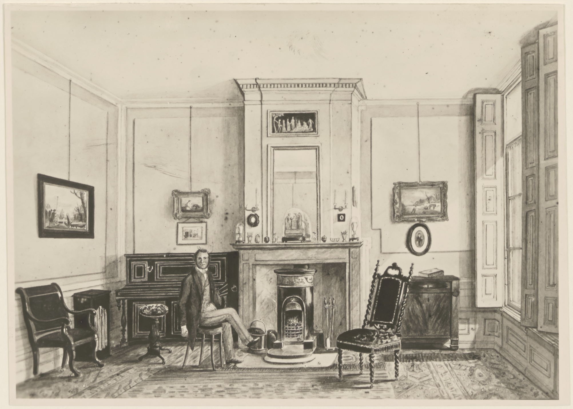 haarden / (gas)kachels huiskamers meubels schoorsteenmantels / schouwen tekeningen