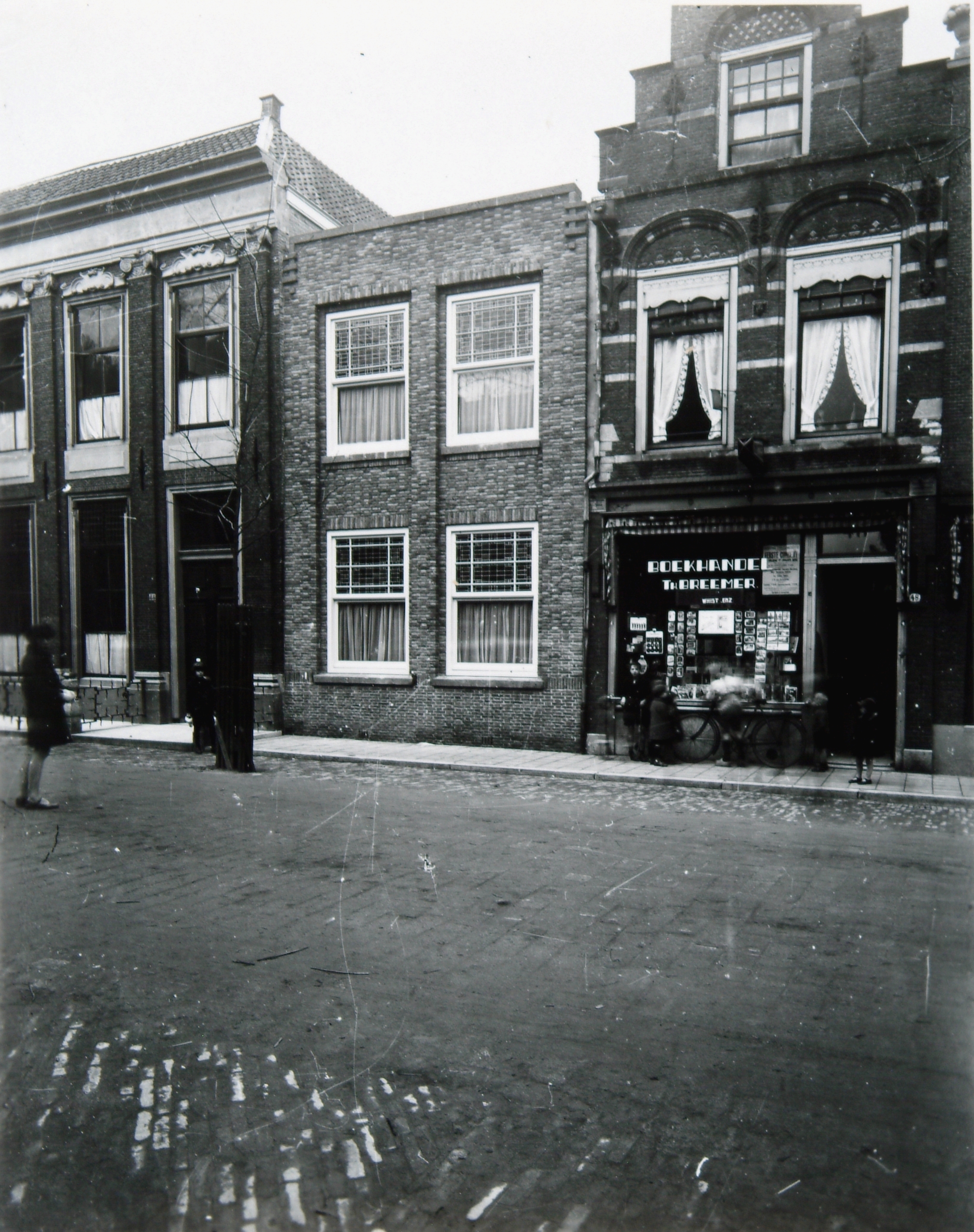 - De noordzijde van het Steegoversloot tussen Doelstraat en Schoolstraat. Rechts boekhandel Breemer, links de Industrie- en Huishoudschool.