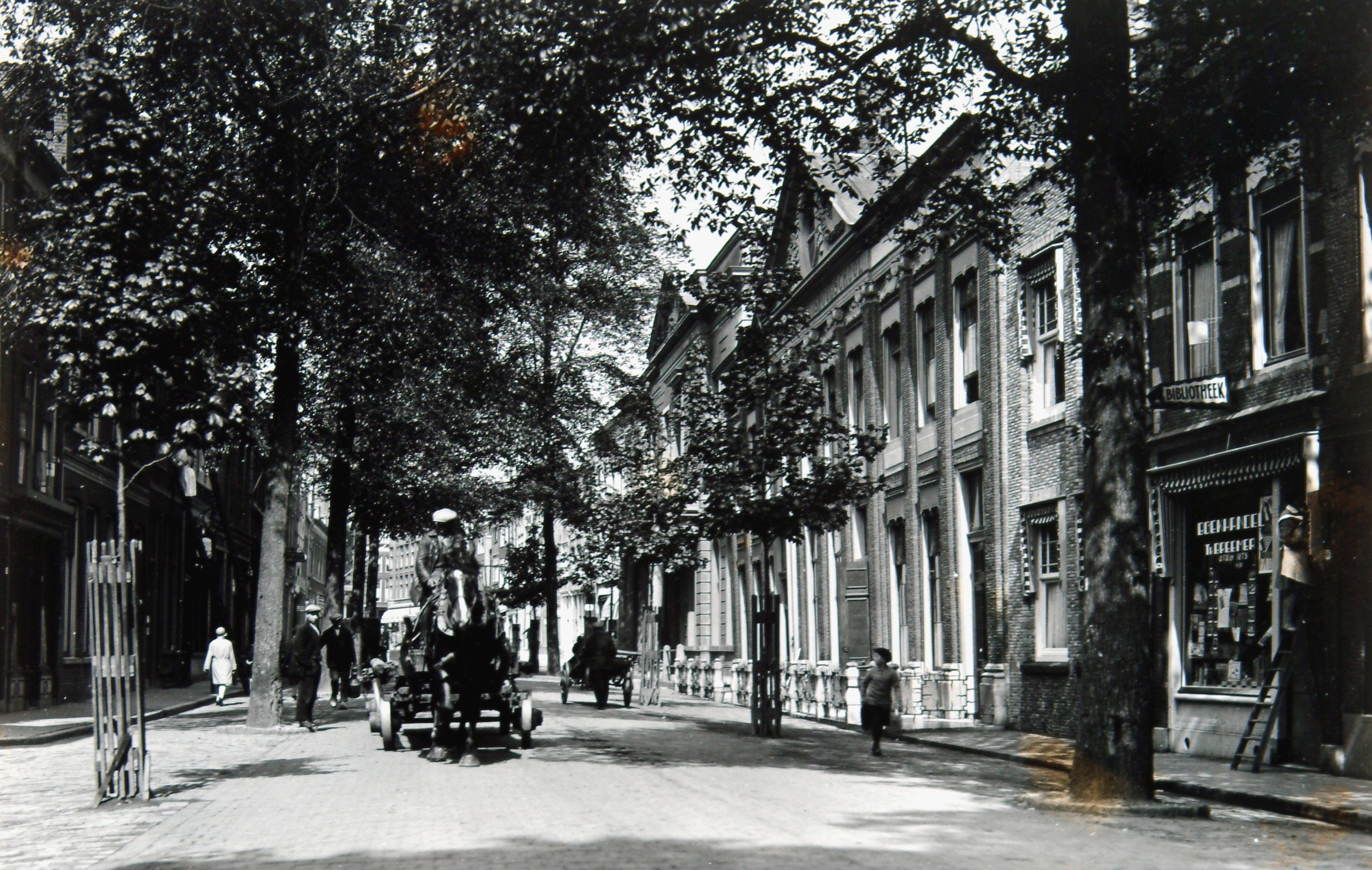 - Het Steegoversloot in de richting van de Voorstraat. Rechts zitten boekhandel Breemer, de Industrie- en Huishoudschool en de rechtbank.