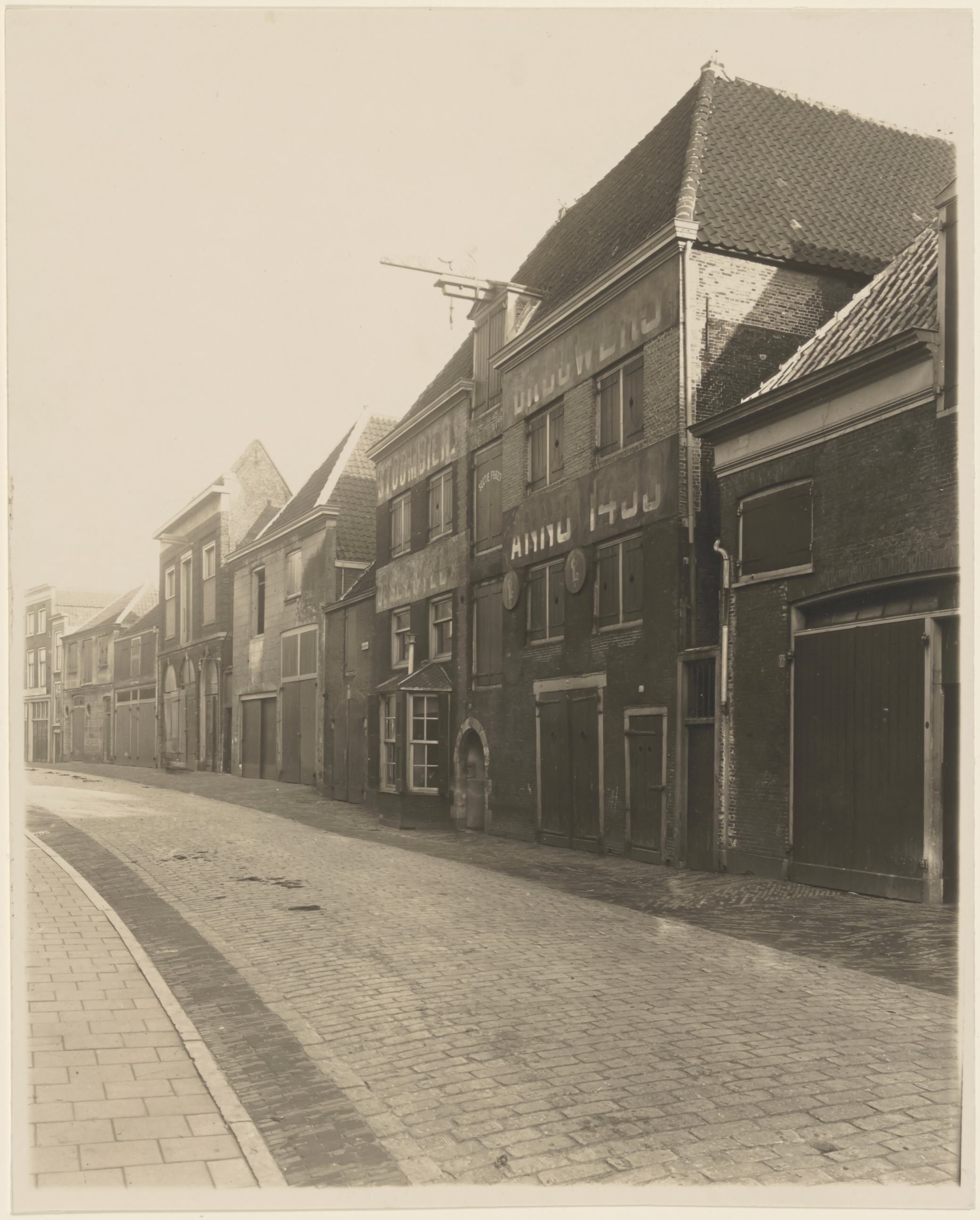 Brouwerij De Sleutel aan zuidkant van de Varkenmarkt, gezien in de richting van de Aardappelmarkt.