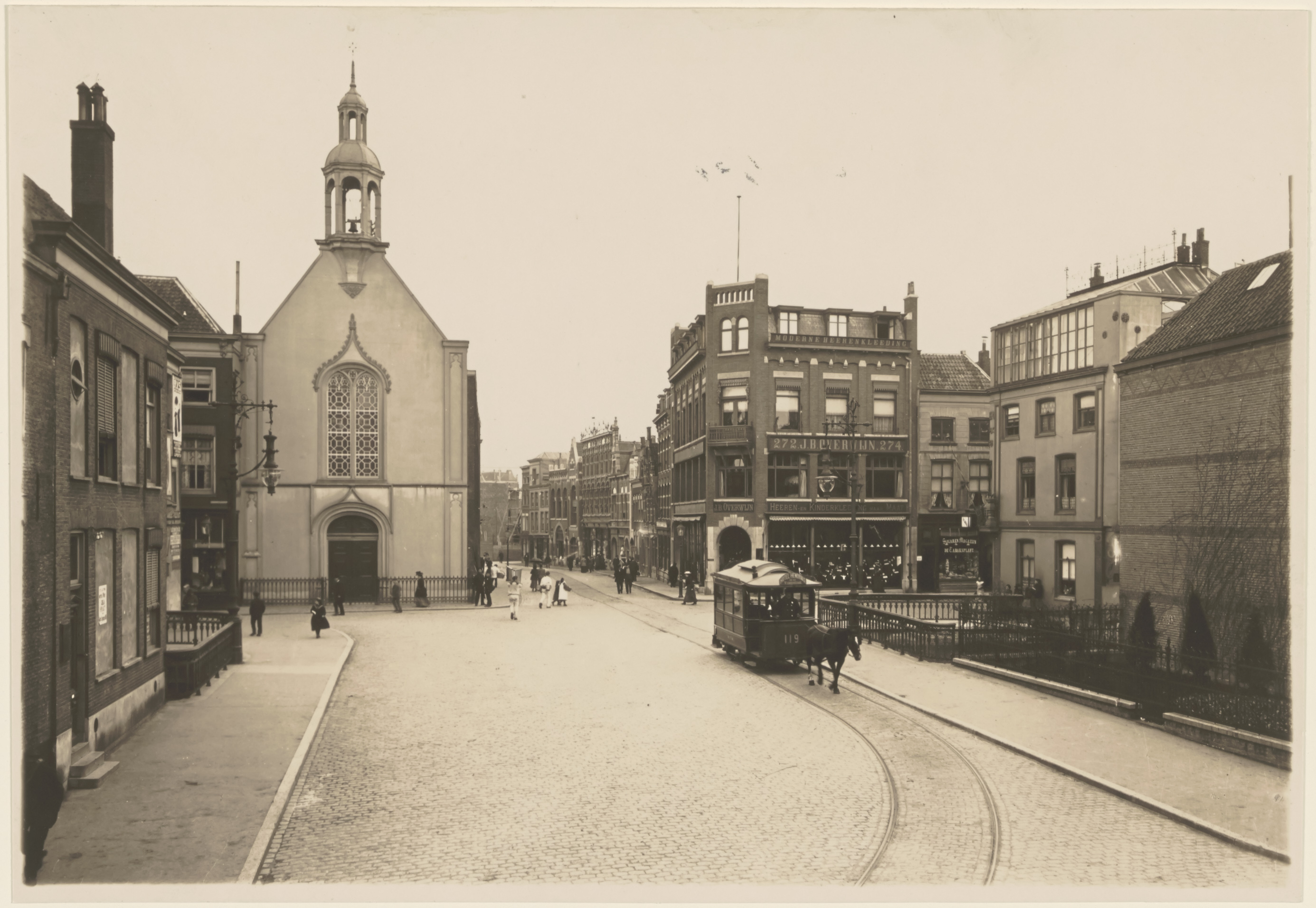 - bruggen kerken kledingzaken / modezaken lantaarns / straatverlichting paardentrams voetgangers
