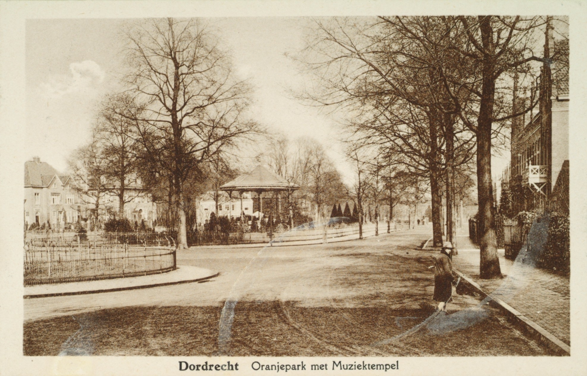 Het pand achter de muziektempel is Villa Zorgwijk aan de Vrieseweg (gesloopt 1934).